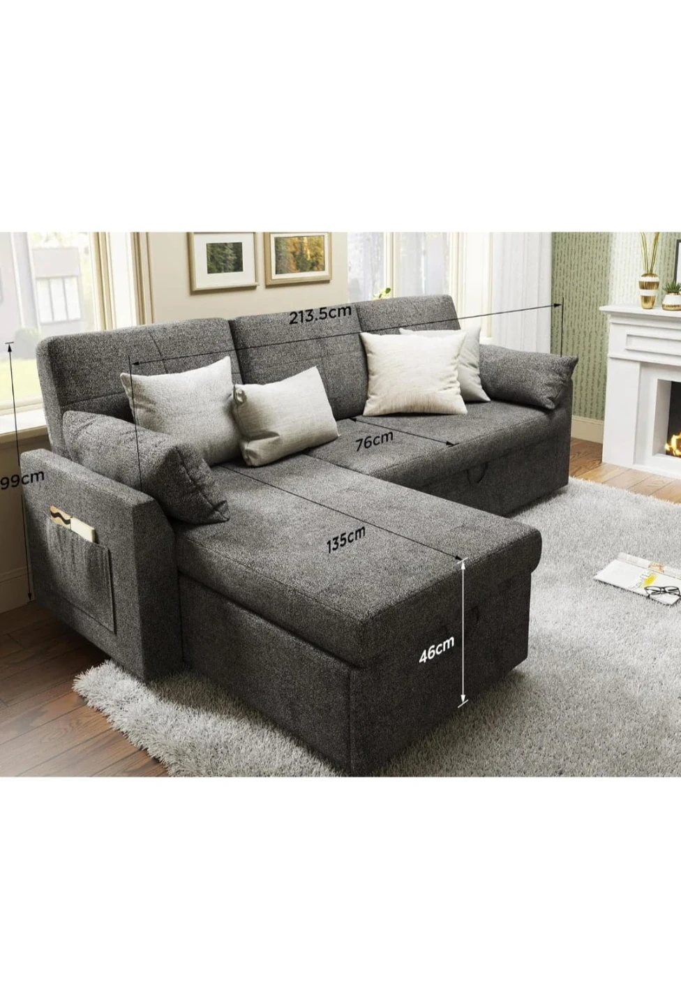 - Practical & Spacious Storage: The built-in storage under the chaise offer ample space to store blankets, pillows, and other necessities. Enjoy a tidy, stress-free living area.