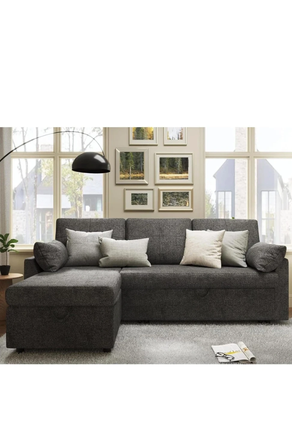 Grey Fabric Sectional Sofa Bed with Storage