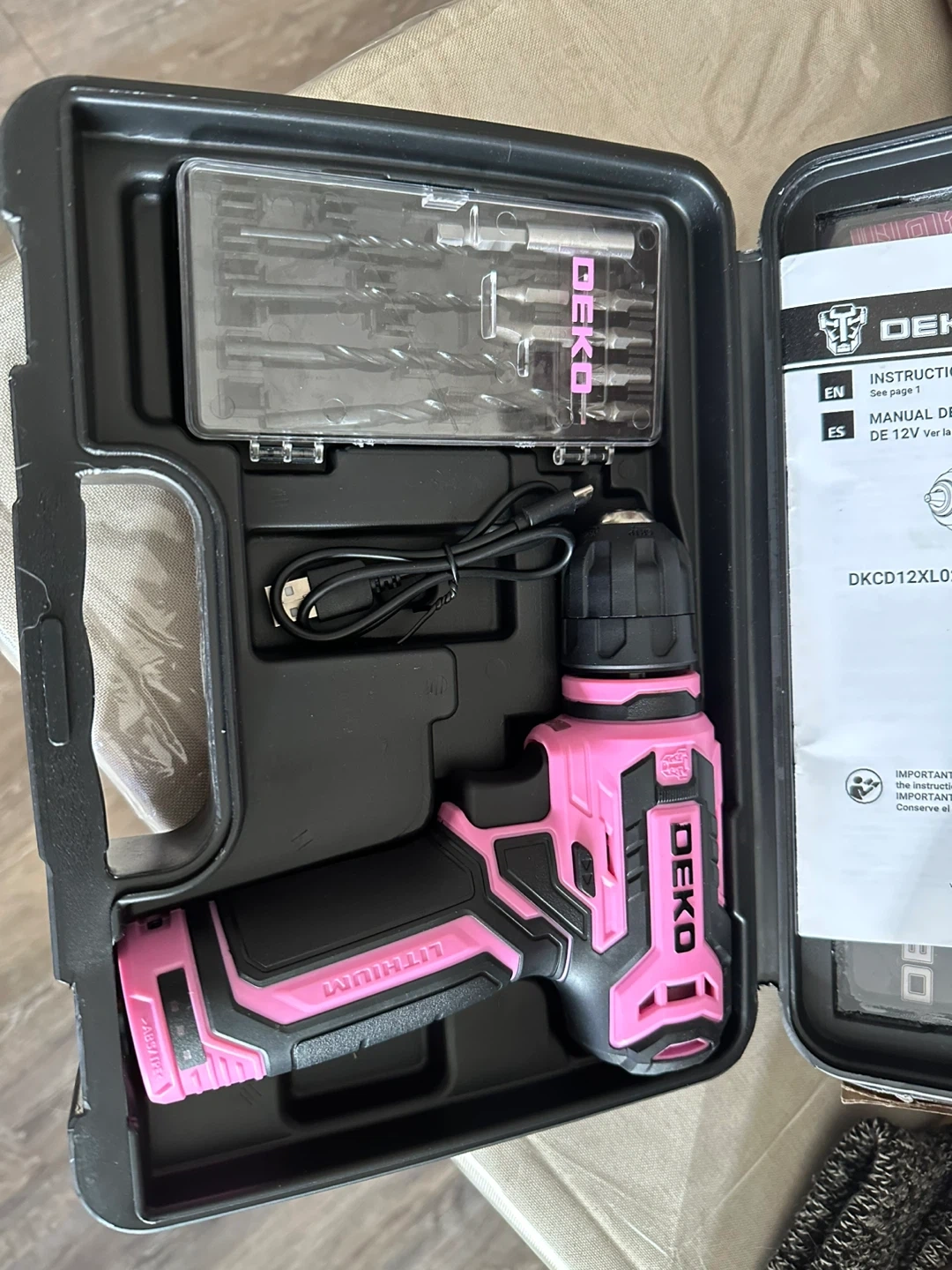 Brand new. Opened to take a pic and post. This is a DEKO 12V cordless drill. It's pink and comes with a set of drill bits and a charging cable. All stored in a handy carrying case. Cross posted for quick pick up near Mayfield/Kennedy. Border of Brampton and Caledon