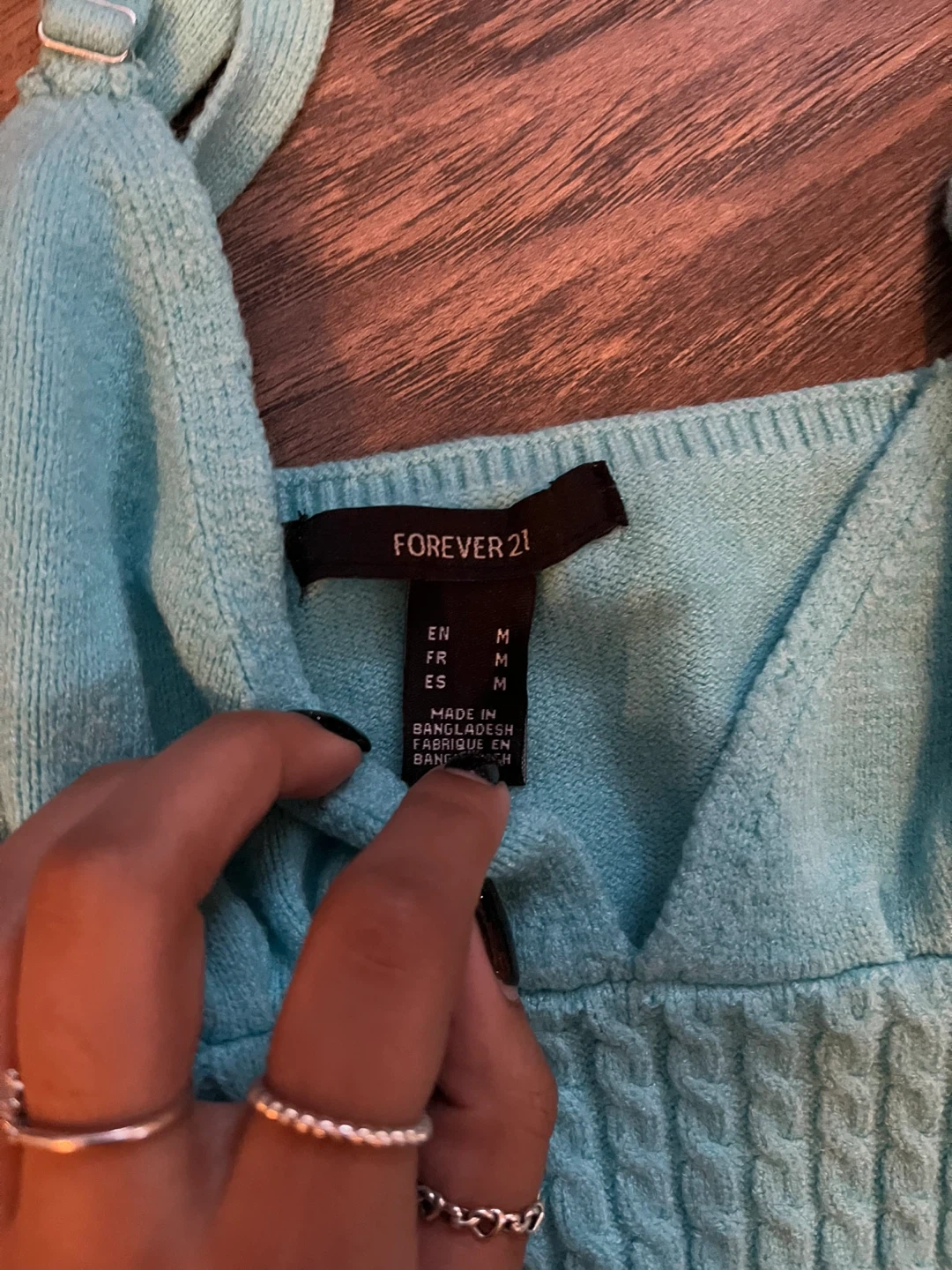 Teal knit fit and flare dress from Forever 21 in size M. It features a cable knit bodice and a flowy skirt. It’s been worn once and is undamaged. Comes from a smoke free and pet free home