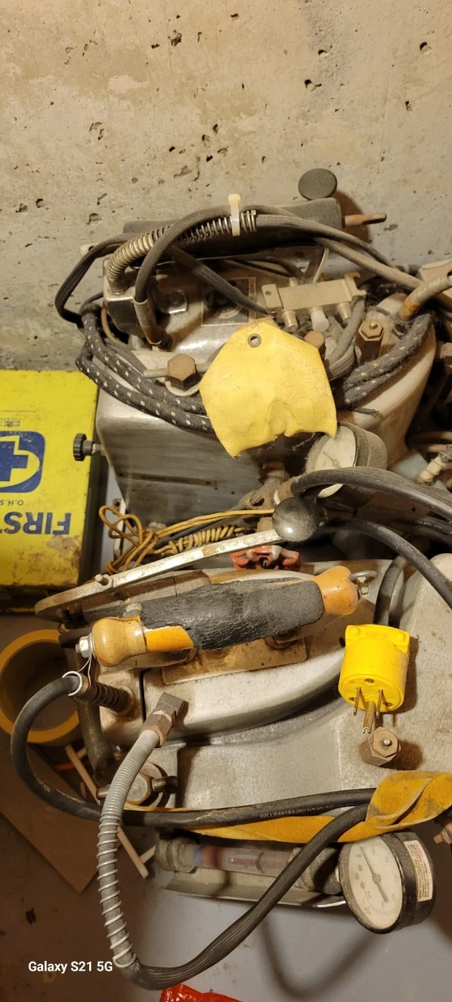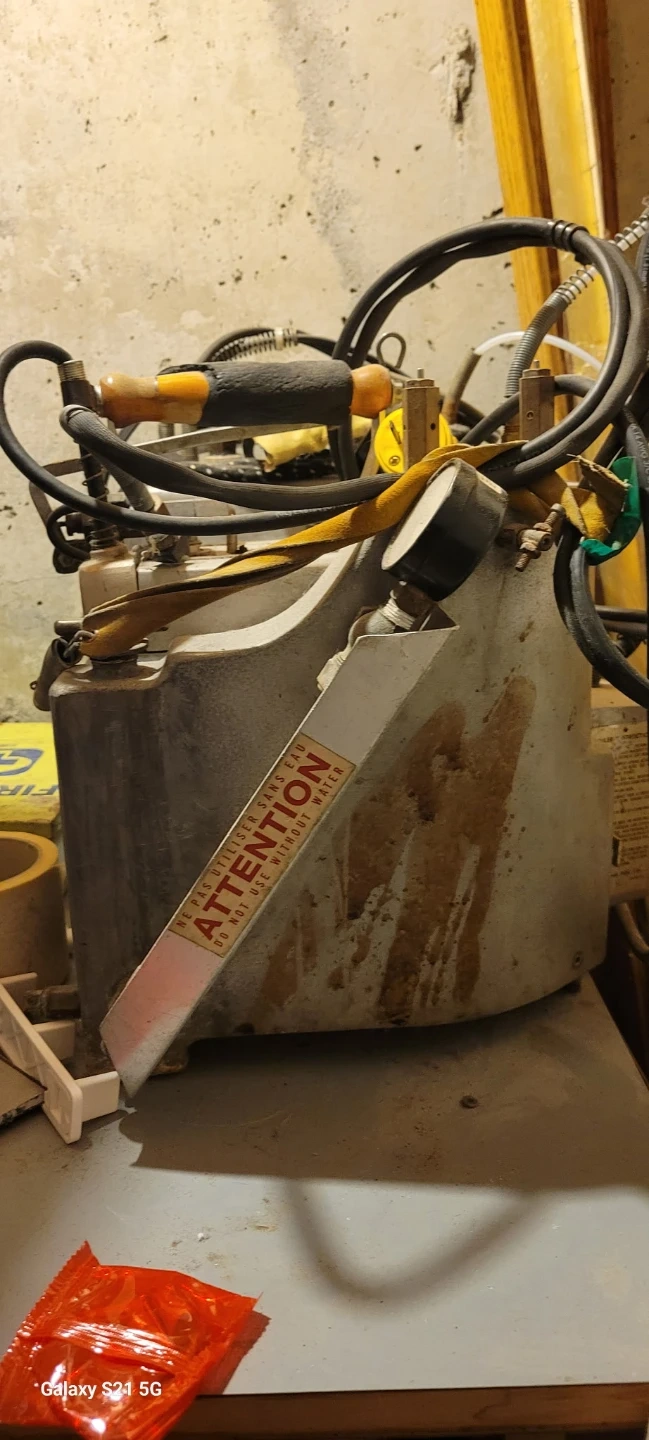 This is a steam boiler unit, used for pressing. It has a gauge and instructions for filling. Needs to be filled with water before use.