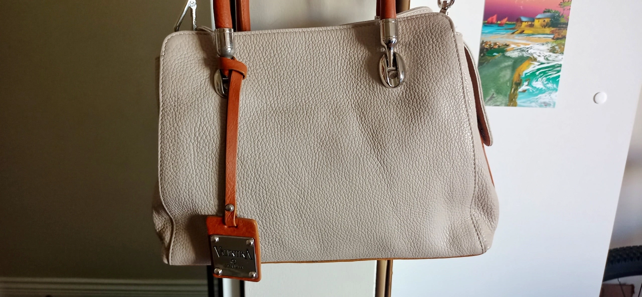 Valentina purse, new. I bought it and never used it. Genuine leather, 2 colours Beige and Brown. Purse made in Italy.
