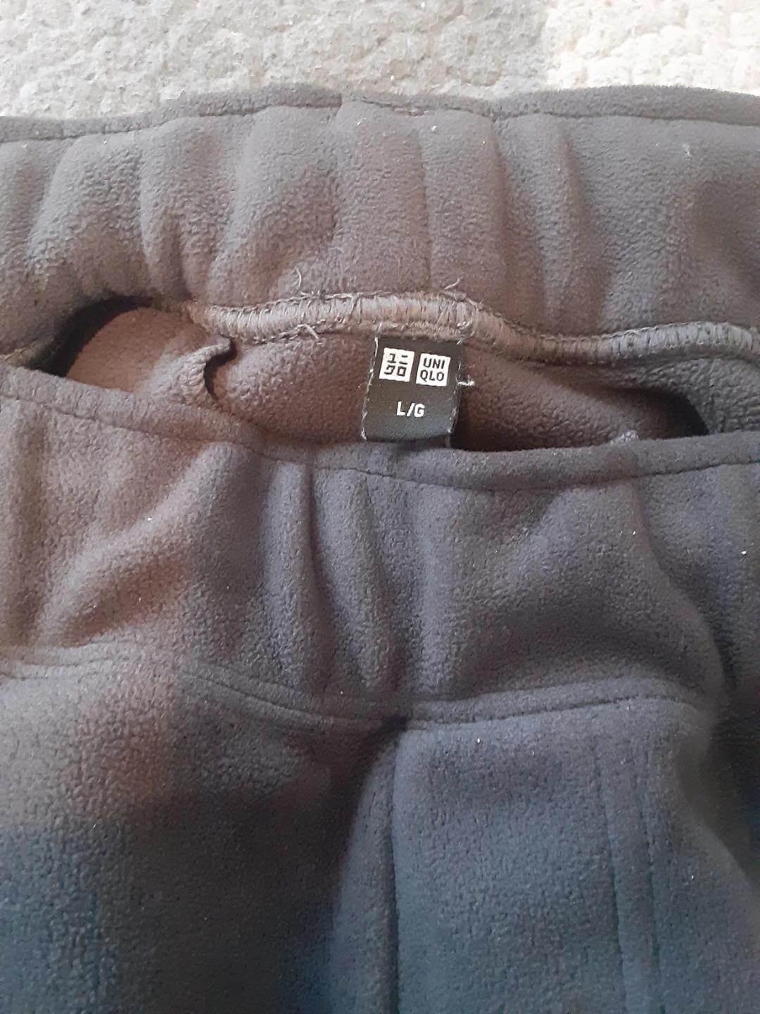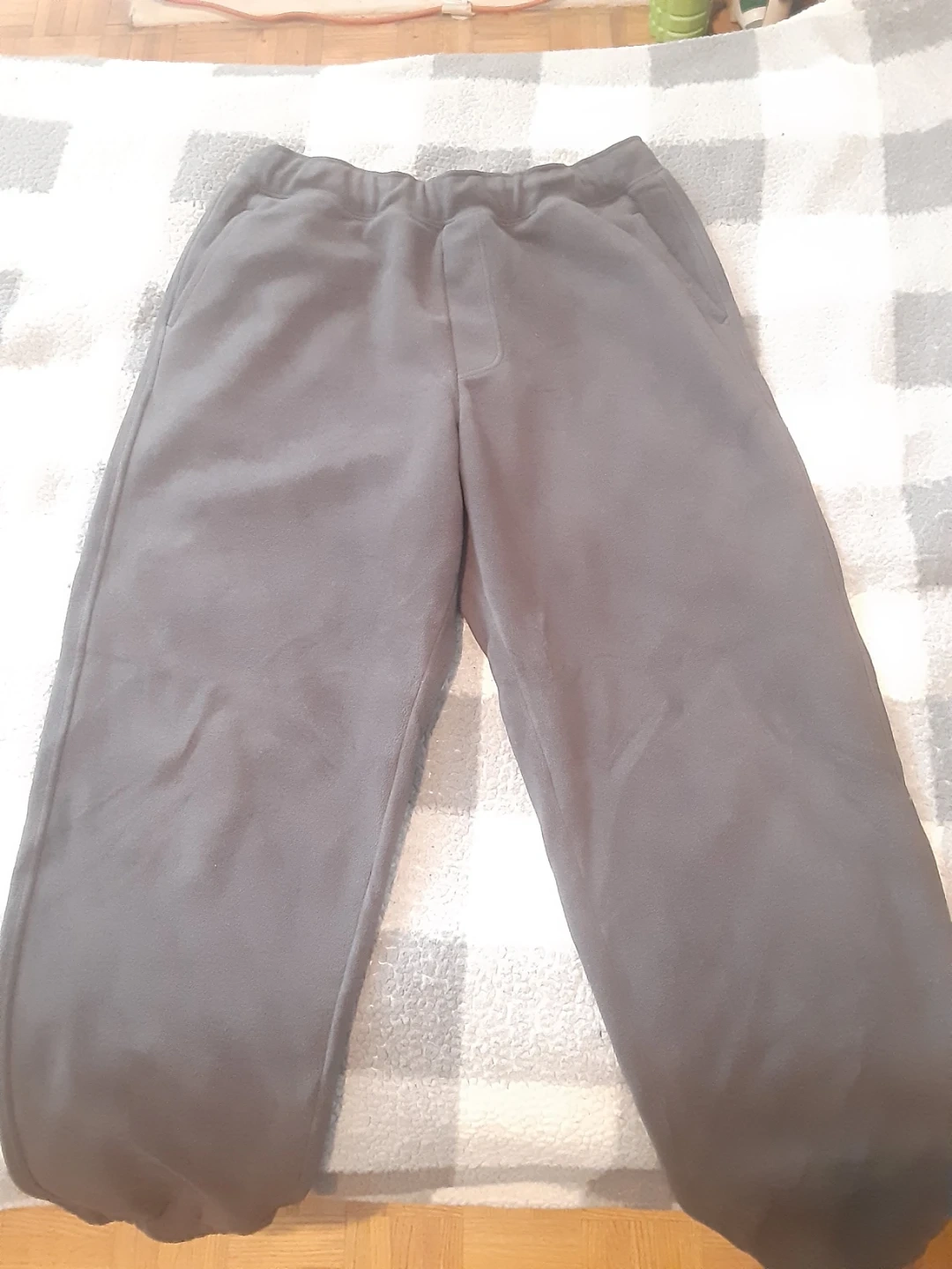 Comfy fleece pants from UNIQLO. Grey colour, size L. Elastic waistband with a drawstring and a back pocket.
