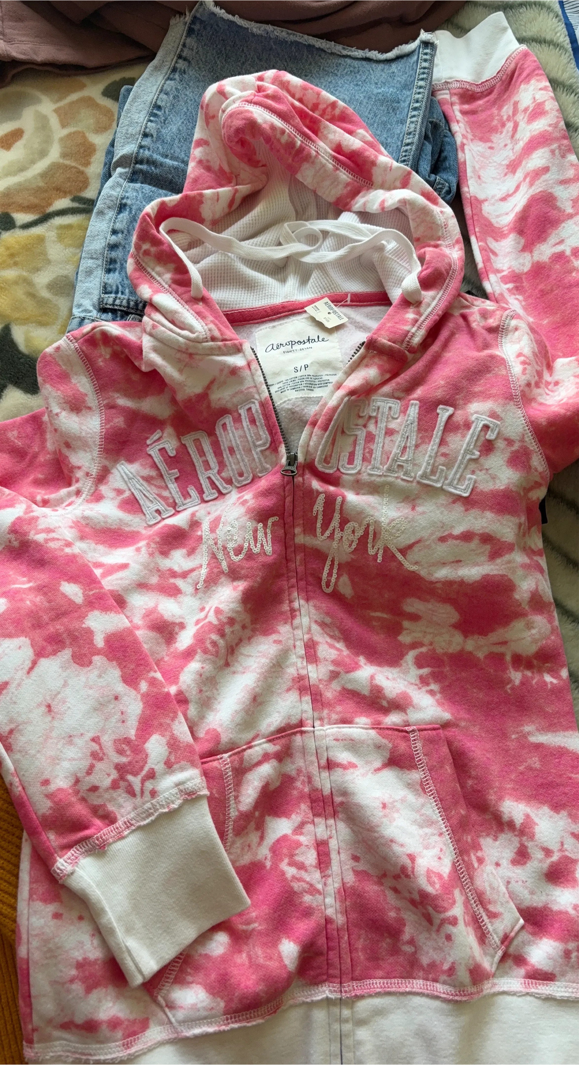 New Aeropostale Pink Tie-Dye Zip-Up Hoodie