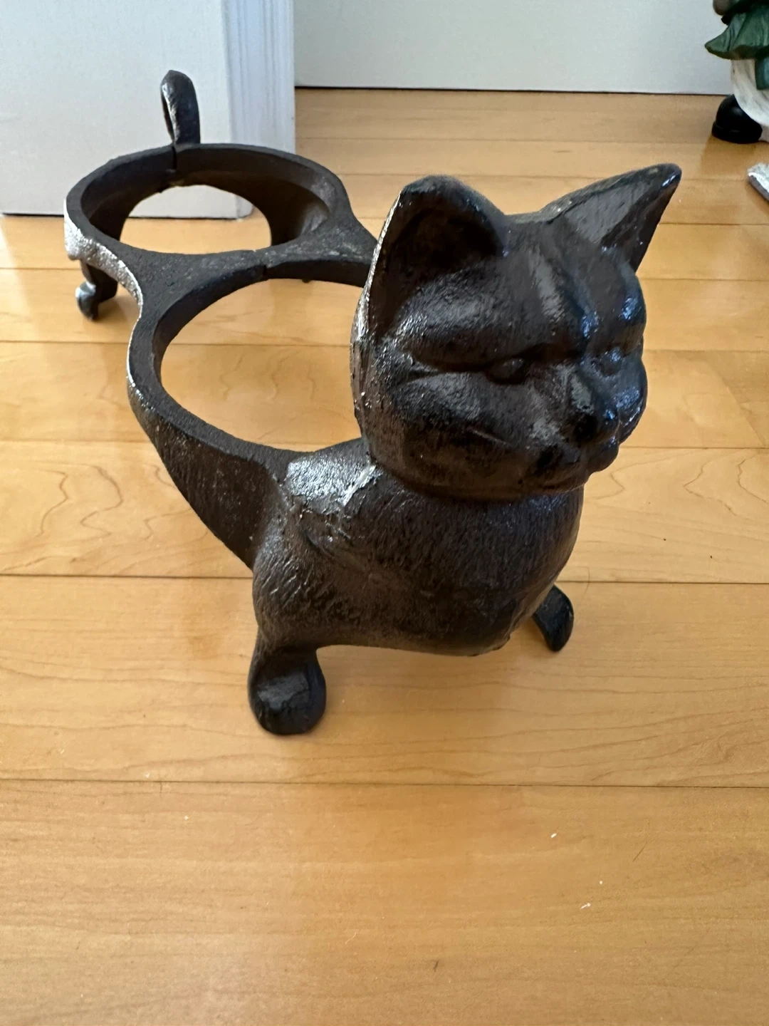 Cast Iron Cat Dish Food & Water Dish Feeder Decorative Cat Planter It measures approximately 5 inches in diameter for each opening. This piece adds a charming touch to any home!