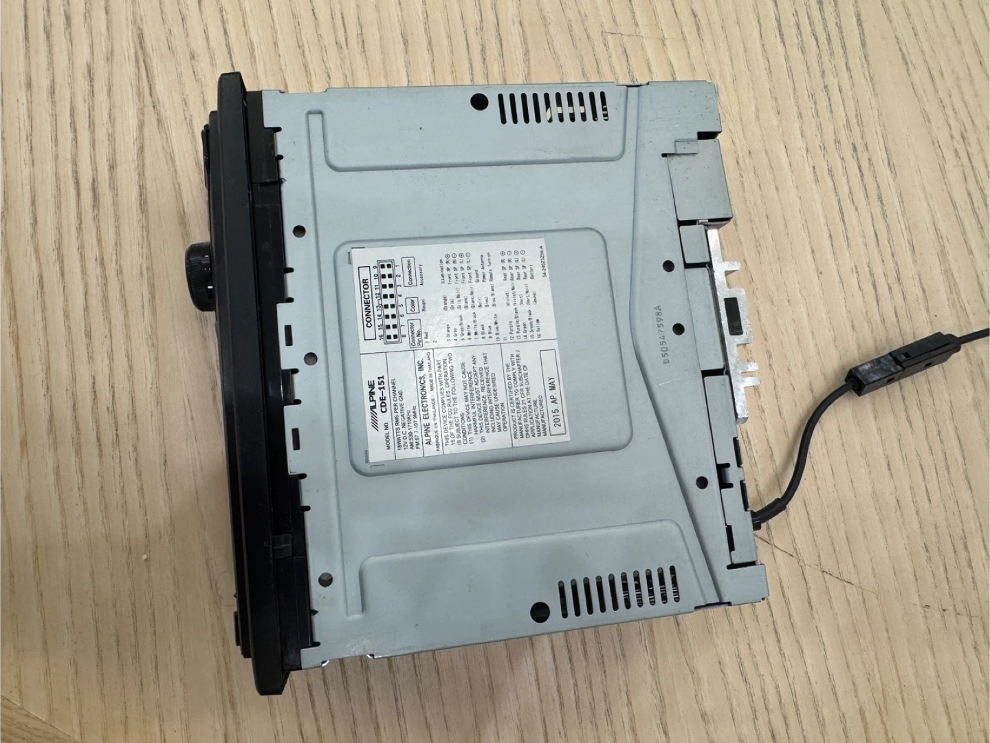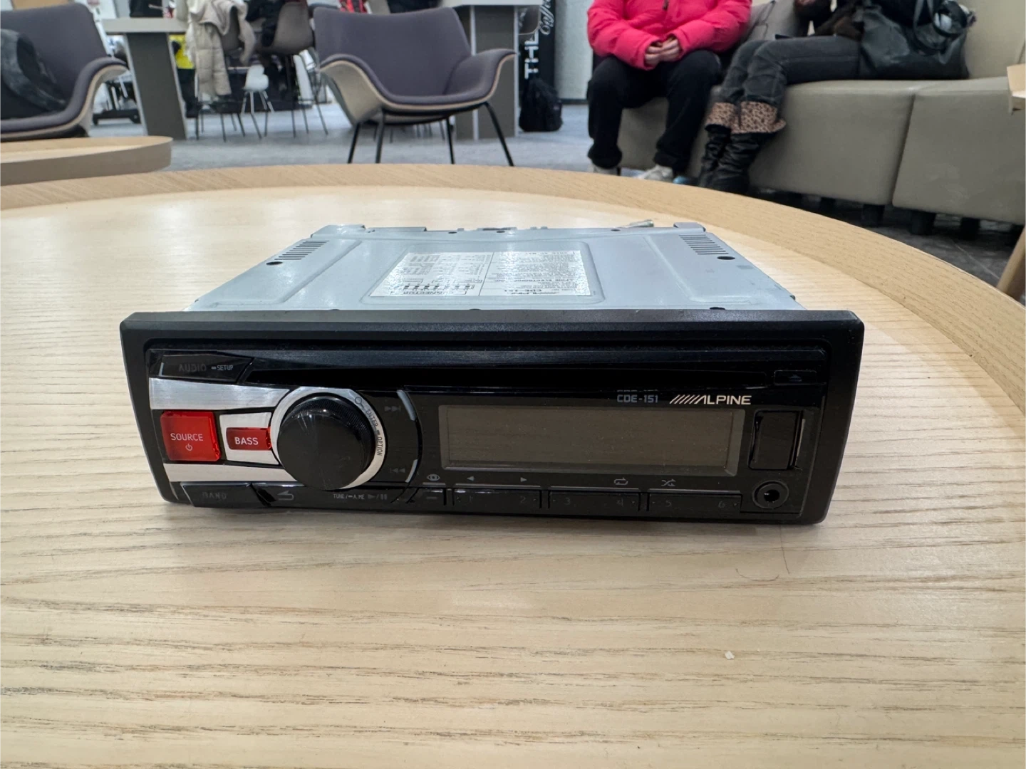 Alpine CDE-151 car stereo receiver. Plays CDs and MP3s. Features AM/FM radio and aux input.