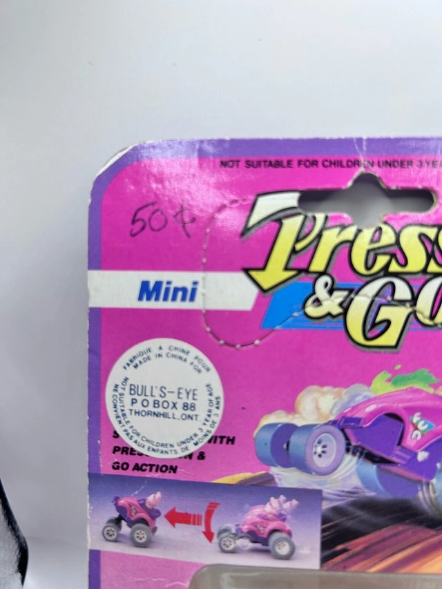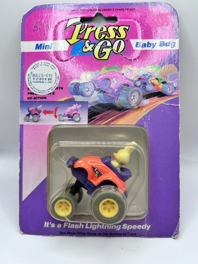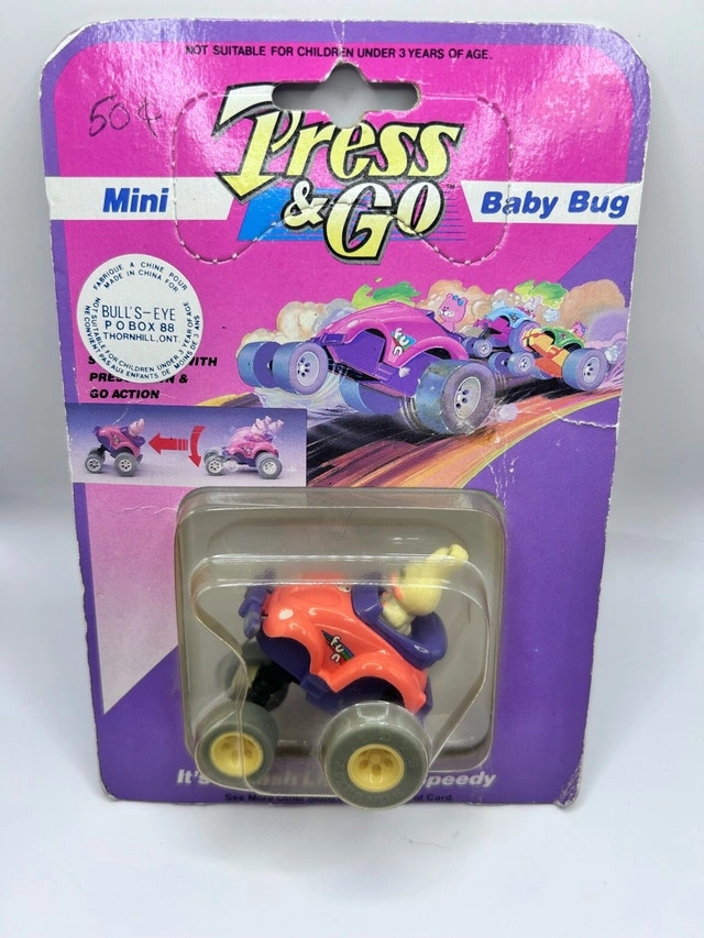 Zoom into nostalgia with this vintage Mini Press & Go Baby Bug! Still sealed on its original card, this collectible toy is ready to bring a flash of lightning speed to your collection. Note: there is some wear on the card. Cash accepted.
