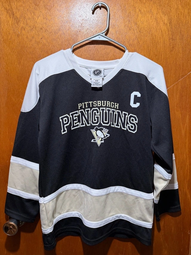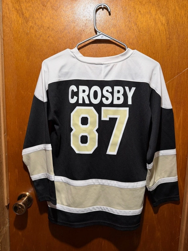 Here is a Sidney Crosby #87 youth hockey jersey, perfect for any young Penguins fan to show their support for their favourite player! This jersey is a great way for kids to cheer on Crosby and the Penguins in style. Although this jersey has been previously enjoyed, it's in good condition and ready for a new fan to wear it with pride! Additional Specifications: Team: Pittsburgh Penguins, Player: Sidney Crosby, Number: 87, Size: Youth. I'm pricing this jersey at $30. If the ad is still up, the item is still available!