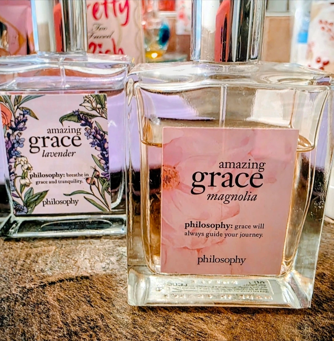 This Philosophy Amazing Grace perfume set includes the Lavender and Magnolia scents. Philosophy: breathe in grace and tranquility. Philosophy: grace will always guide your journey.
