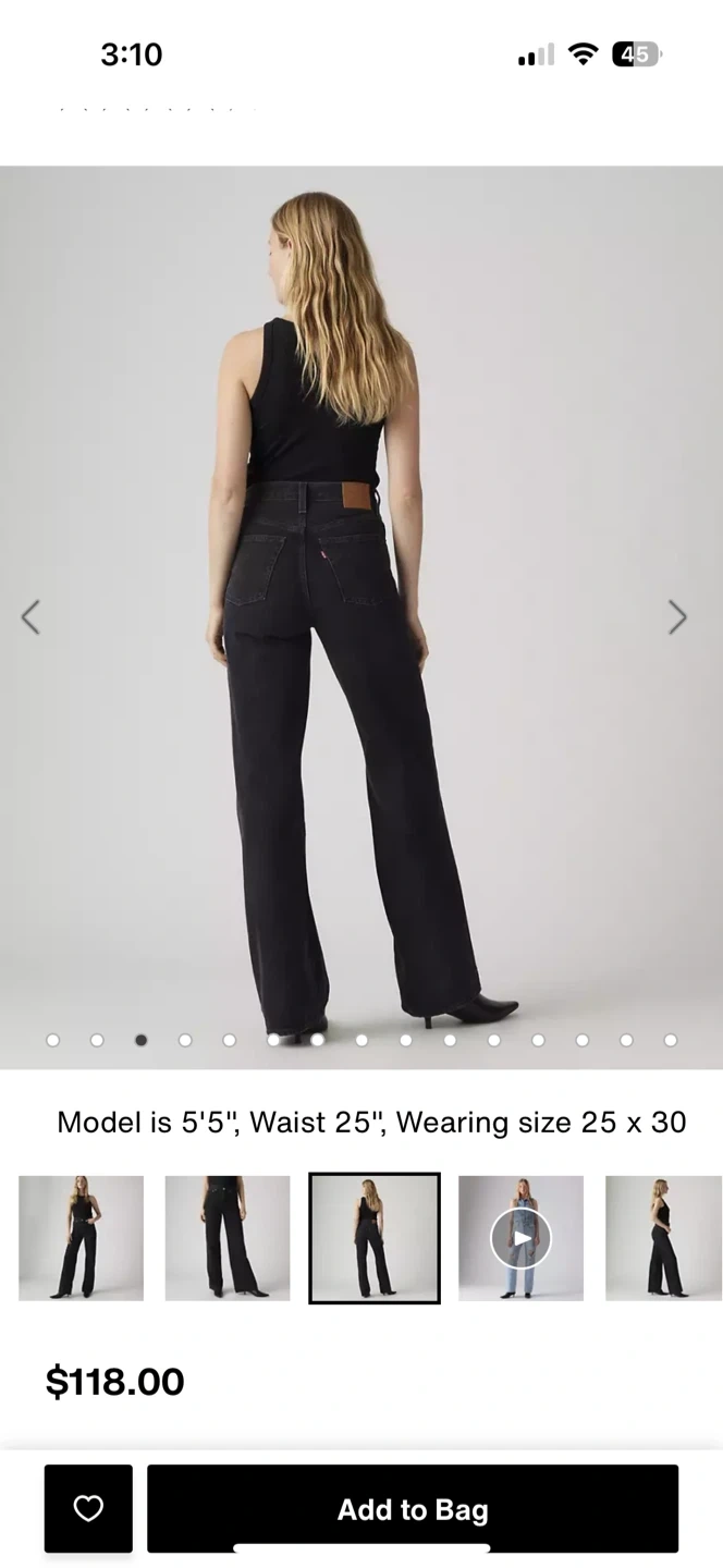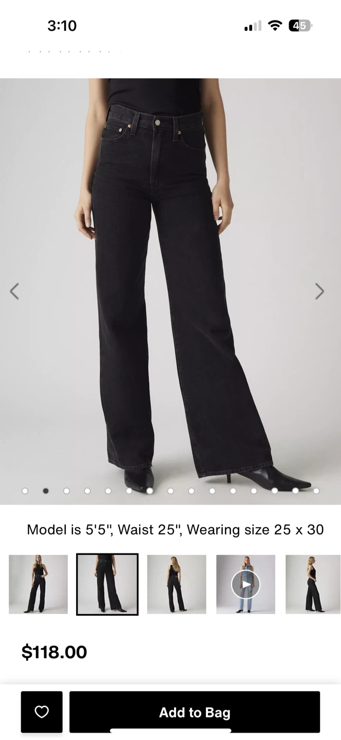 Levi's Black Wide Leg Jeans Size 26 x 30