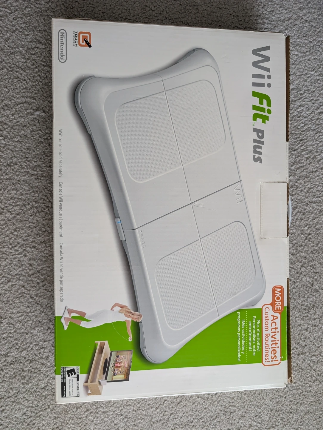 Nintendo Wii Fit Plus board for sale. It comes with the original packaging. This bundle includes the Wii Balance Board and the Wii Fit Plus software.Never been used.