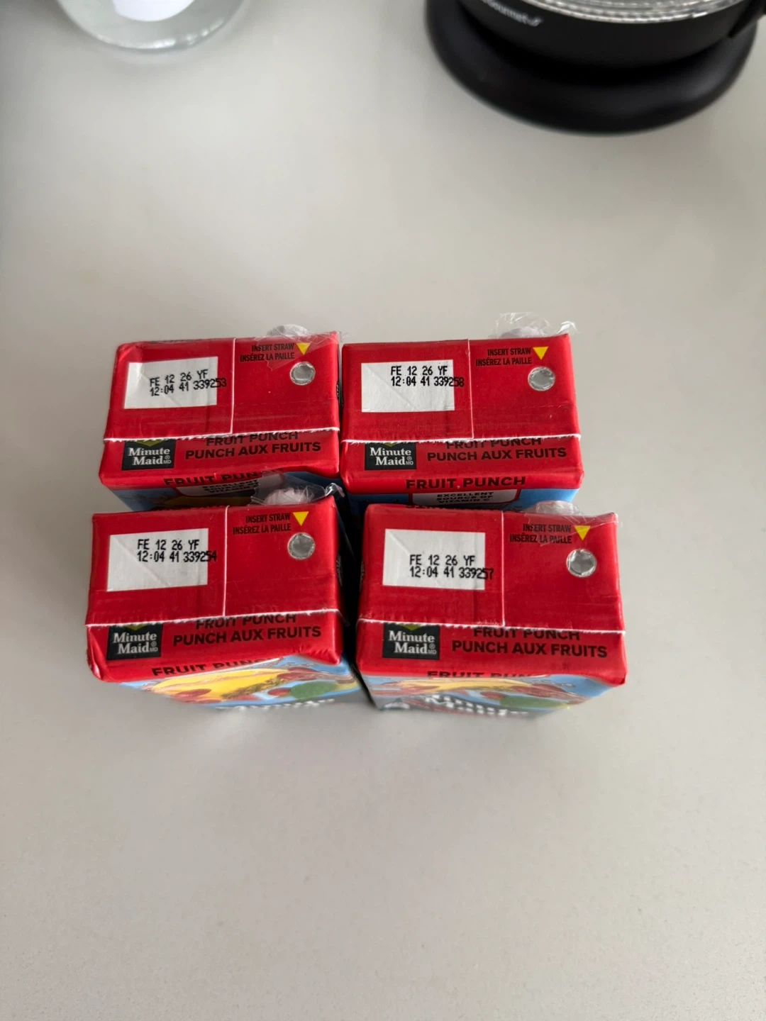 Four 200ml boxes of Minute Maid Fruit Punch.