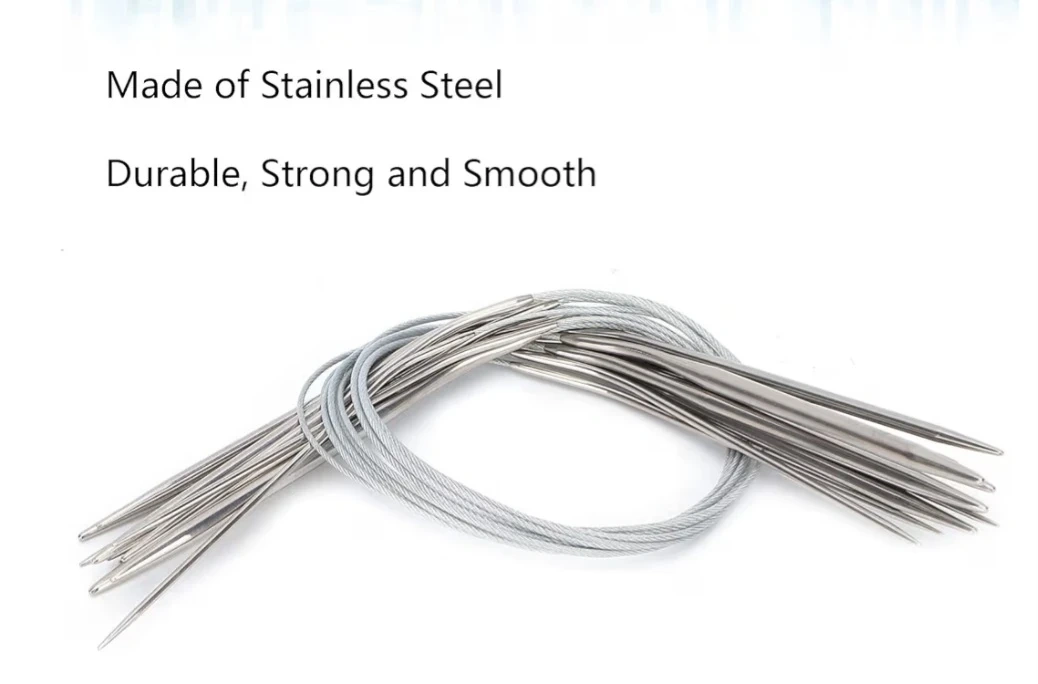 Circular Knitting Needles Stainless Steel Round Needles Crochet Needles of Various Sizes, Smooth Handles, No Burrs at The Tip, Strong and Durable, Not Easy to Break, Suitable for Beginners