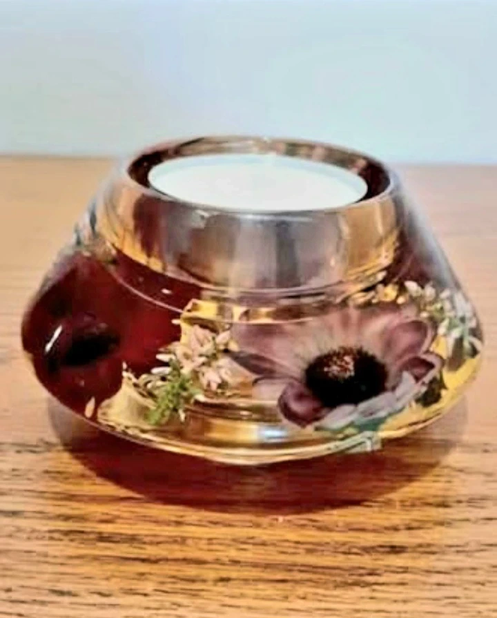 Add a touch of Elegance to your home with this unique , One of a Kind Stunning floral Set of two, German Handmade Floral Dreamlight Candle Holders, showcasing beautiful, Handcrafted details that capture the light.