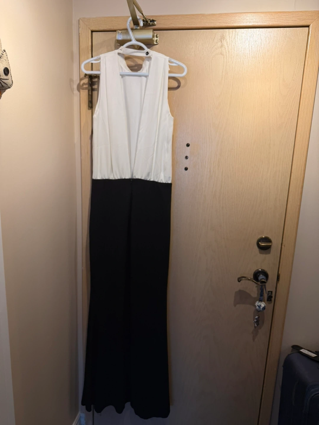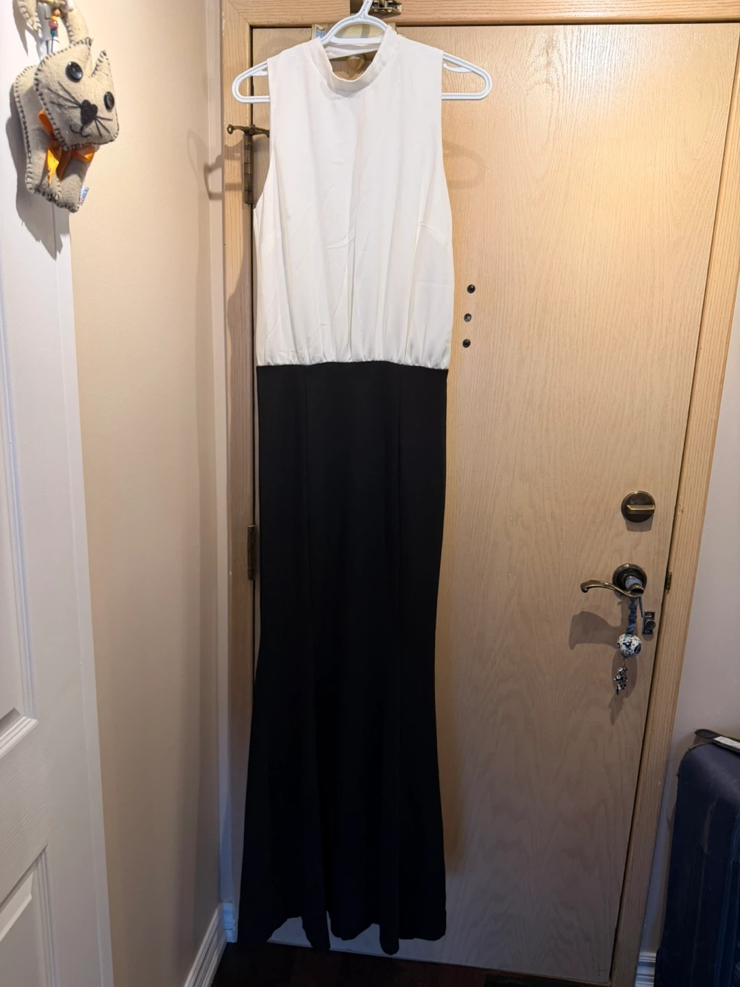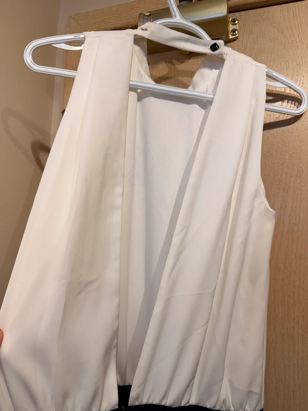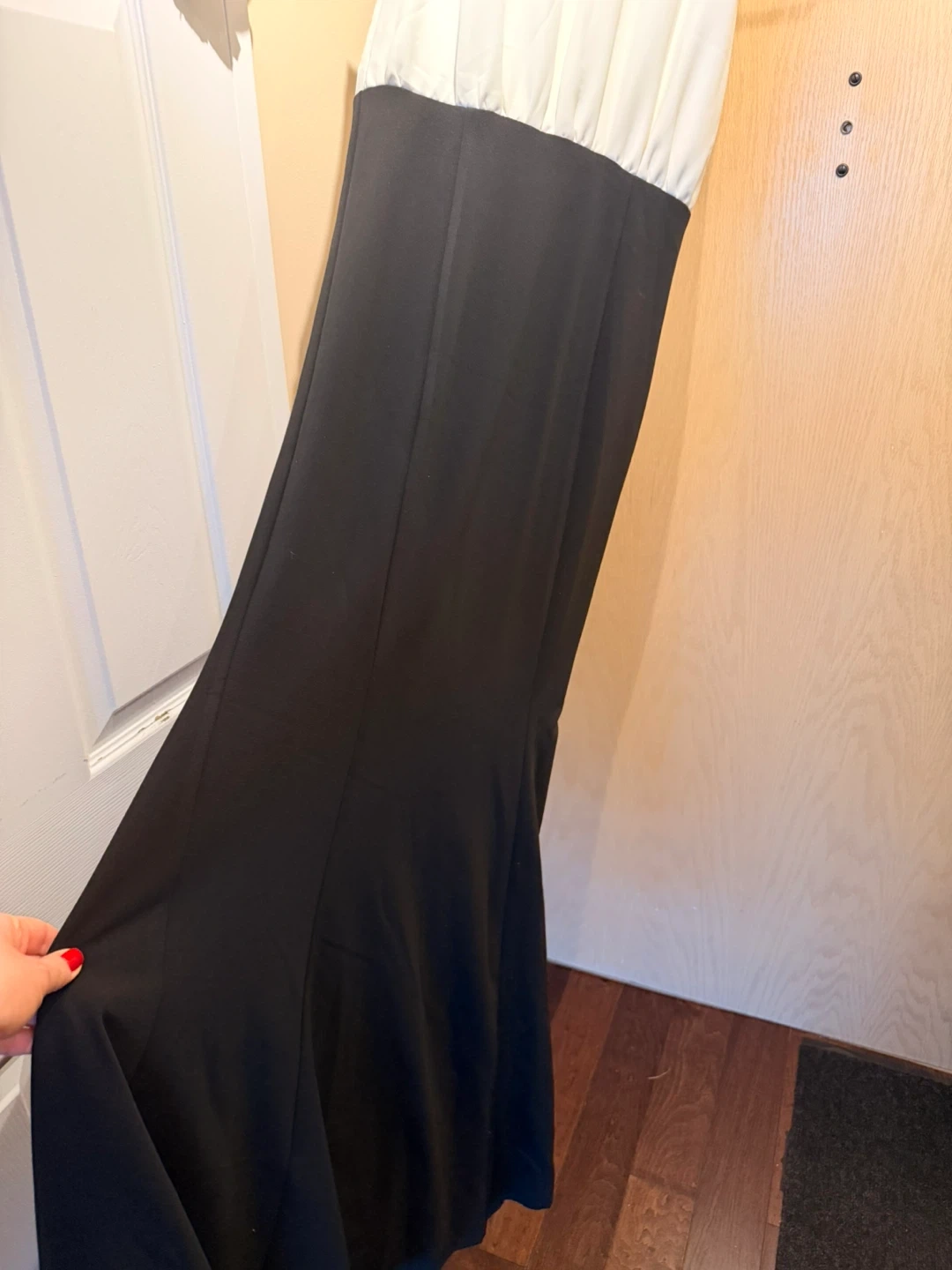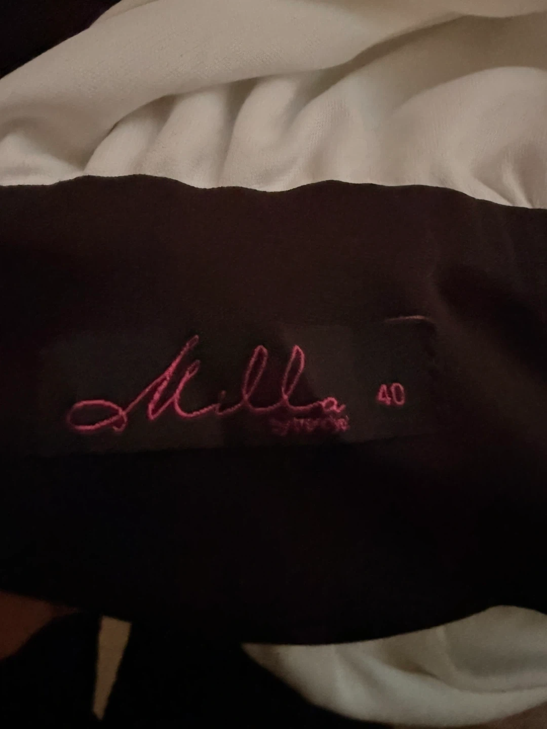 This Milla by St. Roche dress features a white sleeveless top and black wide skirt. It's a size 40. It's perfect for a formal event or a stylish outing!