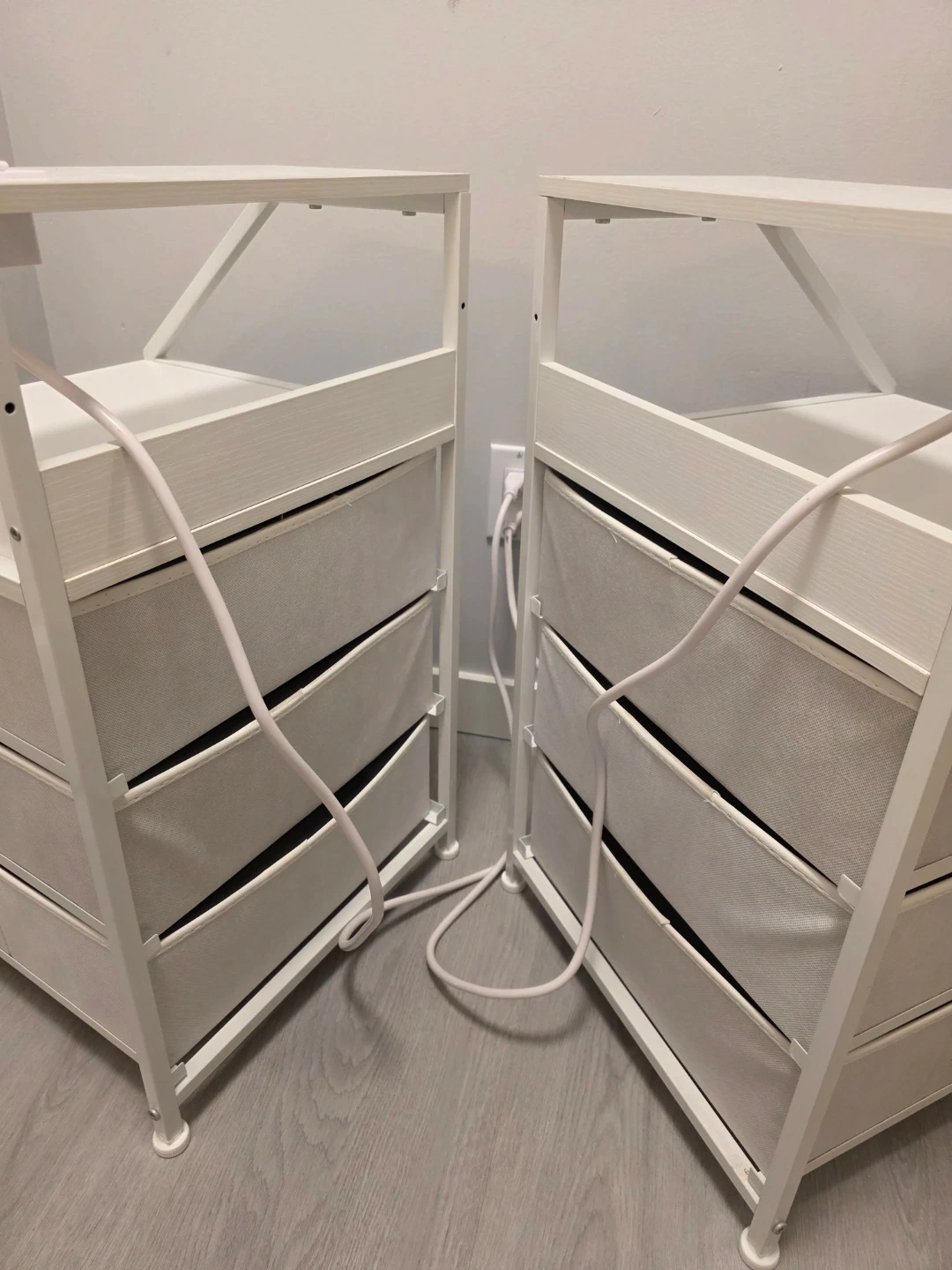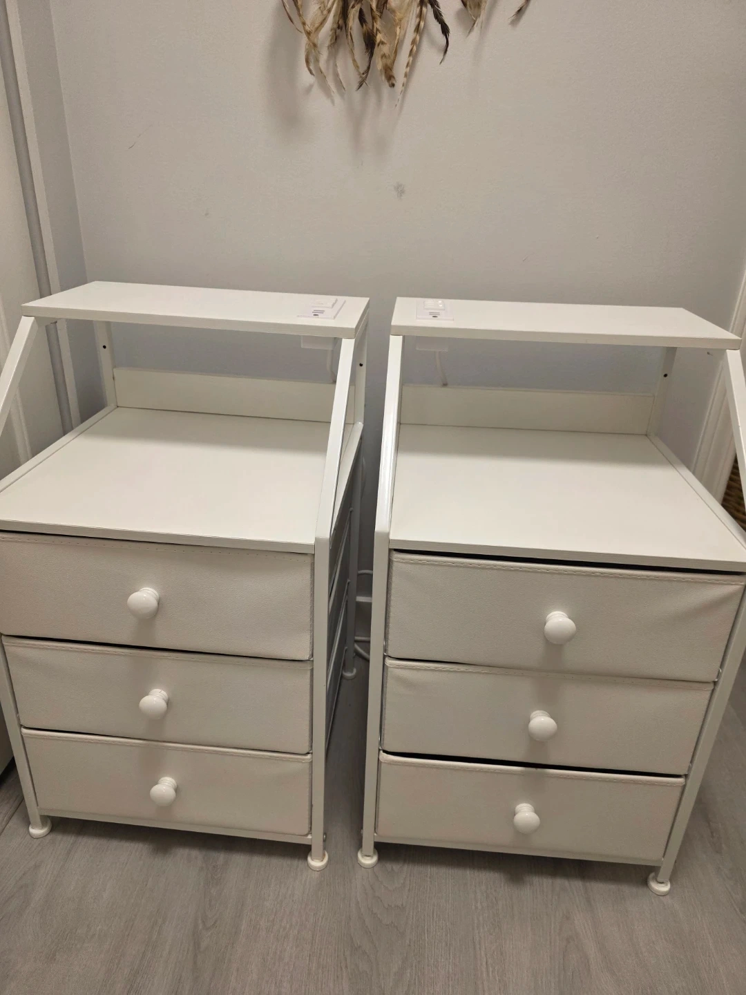 Two nightstands with power outlets and USB ports. They are practically new, very little use. I moved and they simply won't fit in our new home. The nightstands have very little use; both include two power outlets and two USB ports, which are working as shown in the video. In any case, the nightstands will be checked before delivery for your peace of mind. Specifications are in the photos of the listing.