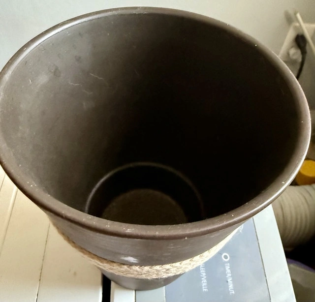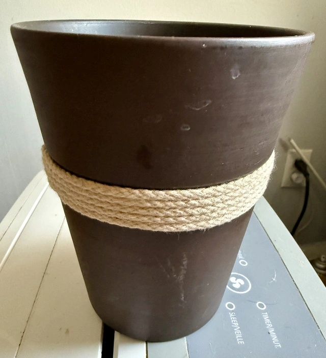 Used brown ceramic planter with a charming rope accent, perfect for housing your favourite plant. This planter is a stylish addition to any indoor or outdoor space, offering a blend of rustic and contemporary design. Material: Ceramic, Colour: Brown, Accent: Rope, Volume: 1.05 L. This planter has been lovingly used and is ready to bring life to your plants, all while adding a touch of rustic elegance to your home or garden. If the ad is still posted, it is still available. Cash accepted, Cashless payment accepted.