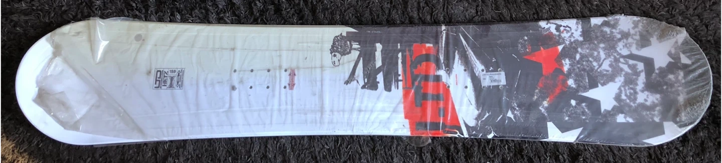 LIMITED Snowboard, Hetz model. Size is 159 cm. This board is new and still in its plastic wrap. I’m told it’s from 2002/2003.