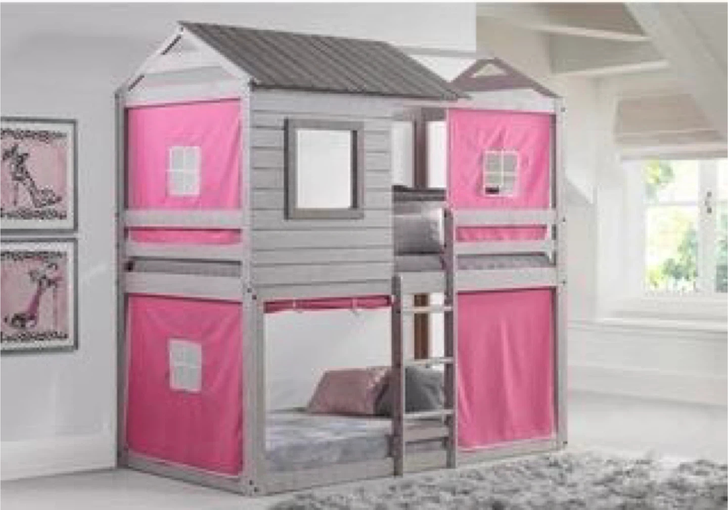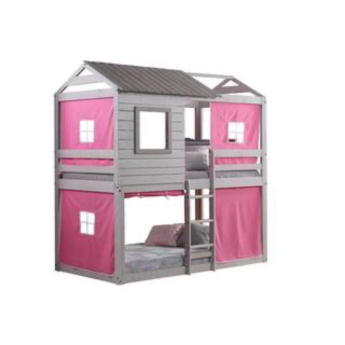 Kids Twin Over Twin Bunk Bed with Pink House Tent