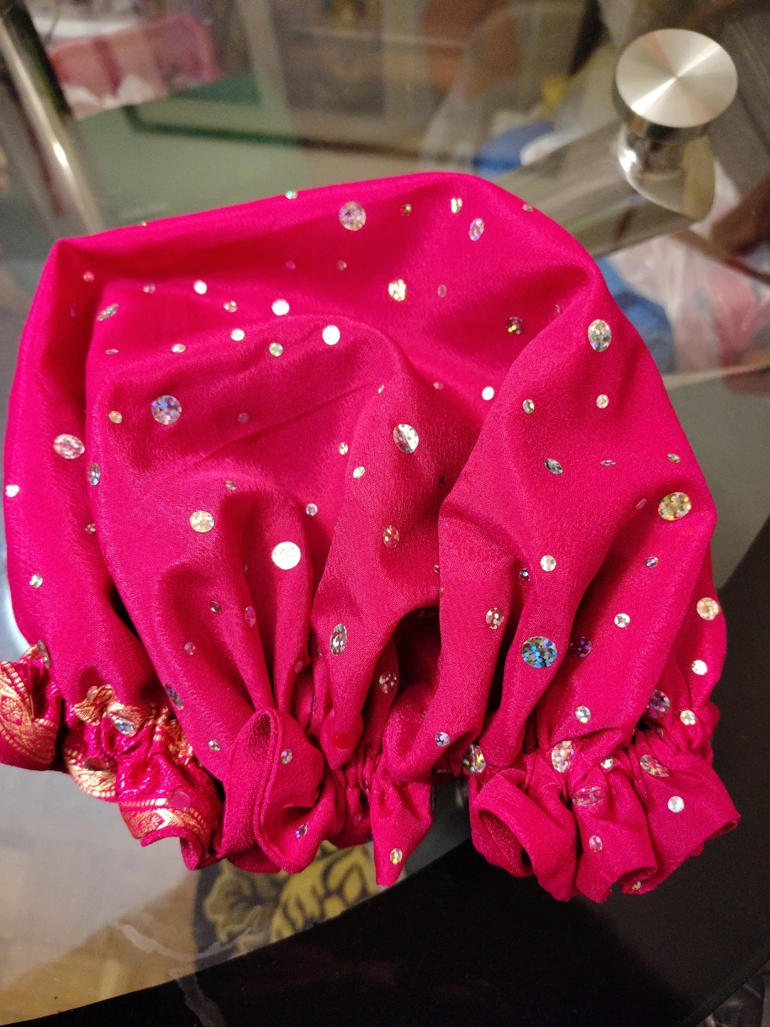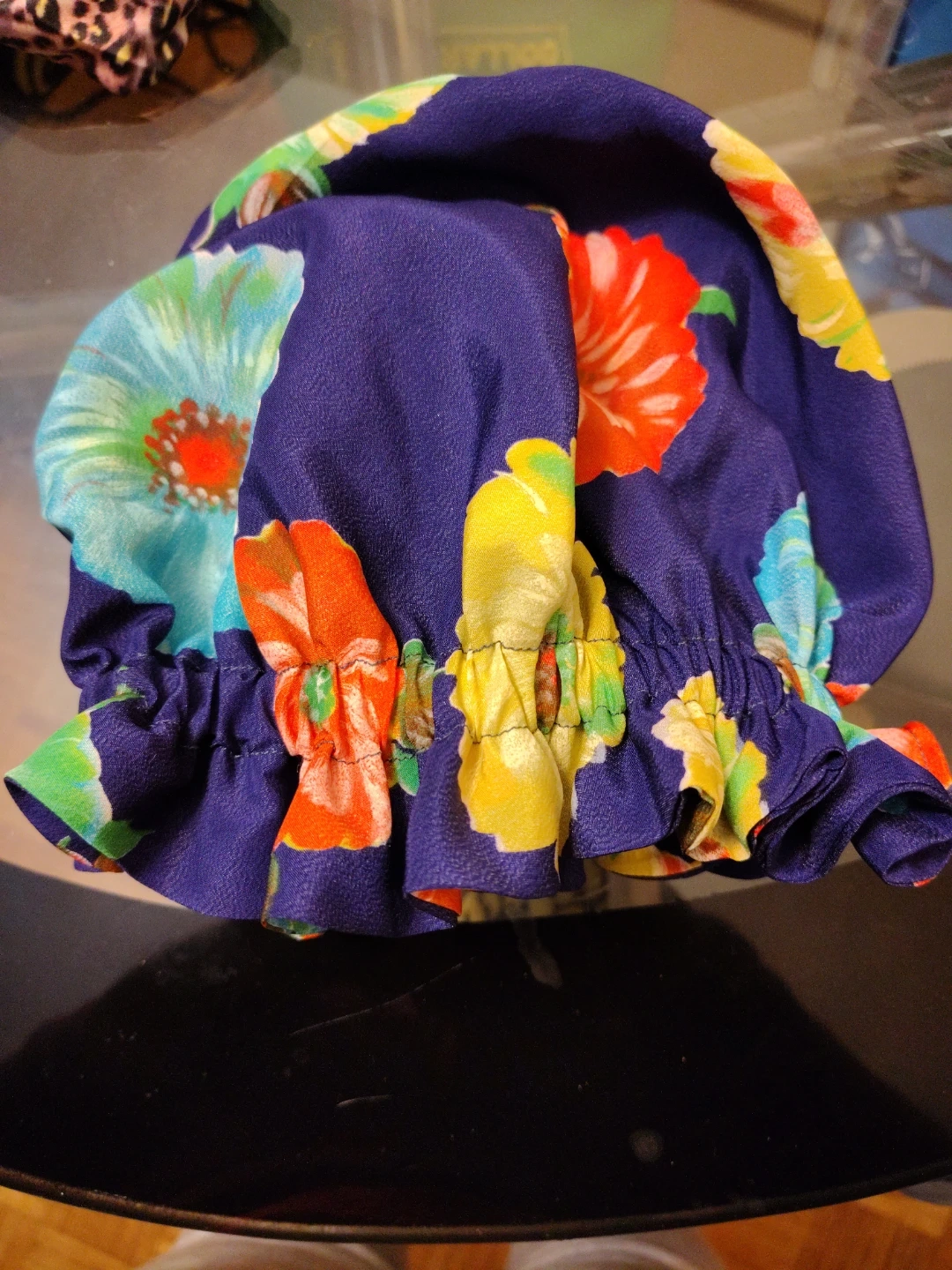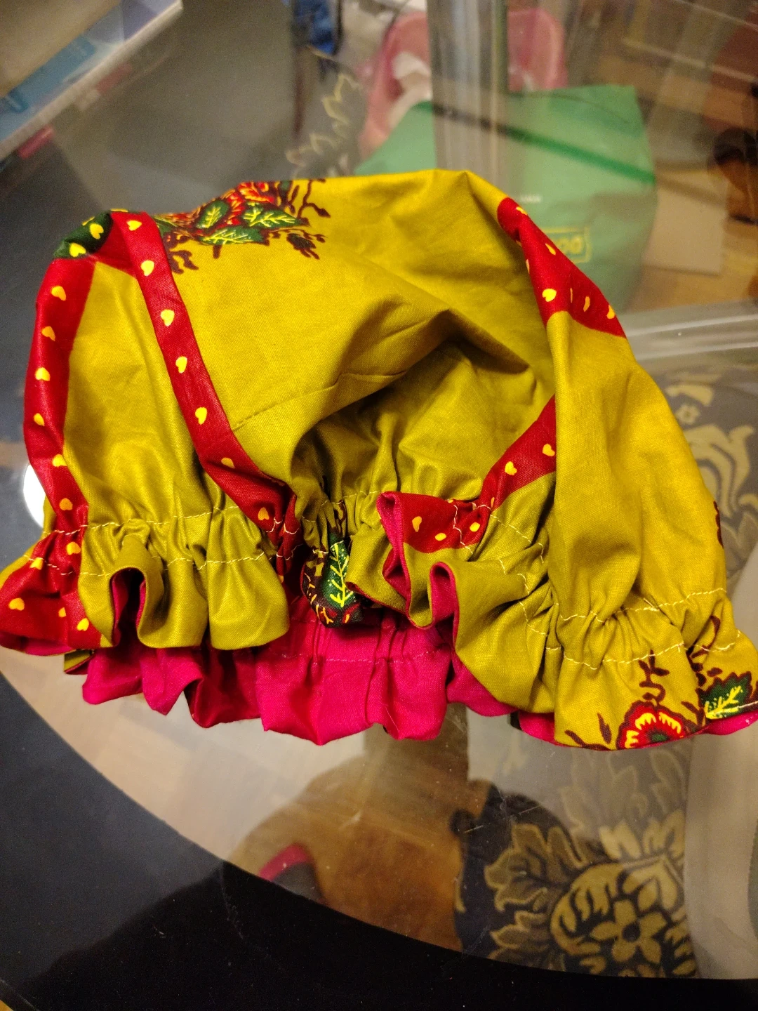 A collection of 7 hair bonnet hand made in various vibrant patterns and colours. These hair bonnet are designed to keep your hair in place when you go to sleep. They feature elasticated edges for a snug fit.