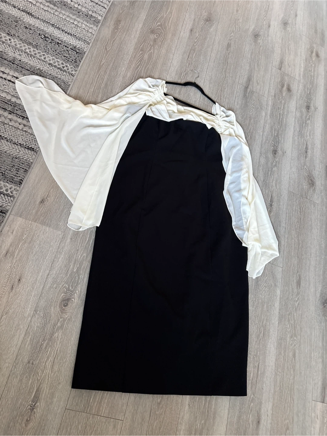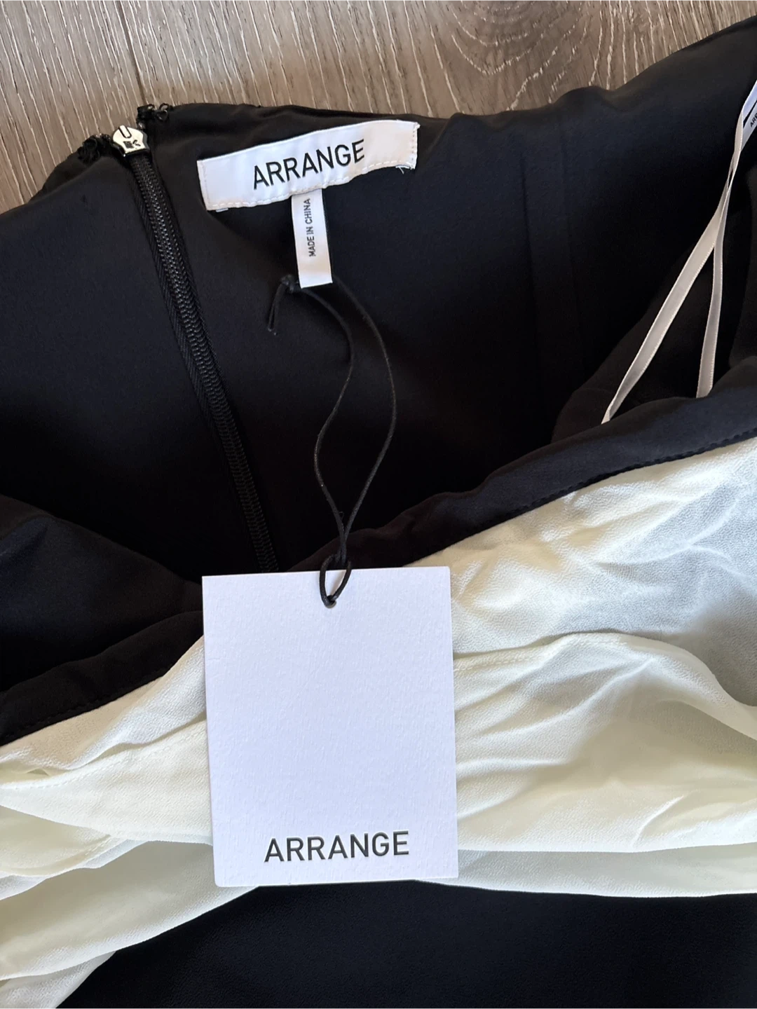 Brand New Women's Black and Cream Chiffon Trim Dress