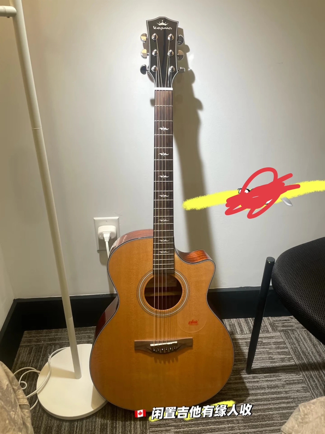 KEPMA 41-inch F1 GA, originally $499, barely played, 99% new, bright finish, PLEK technique, custom-tuned string action, suitable for beginners and self-learners. Includes humidifier, capo, guitar strap. Also includes a guitar case worth several tens of dollars. This is a Kepma acoustic guitar. It features a beautiful wood finish and a comfortable neck. It's a great instrument for any aspiring musician!