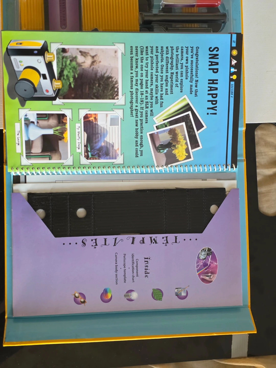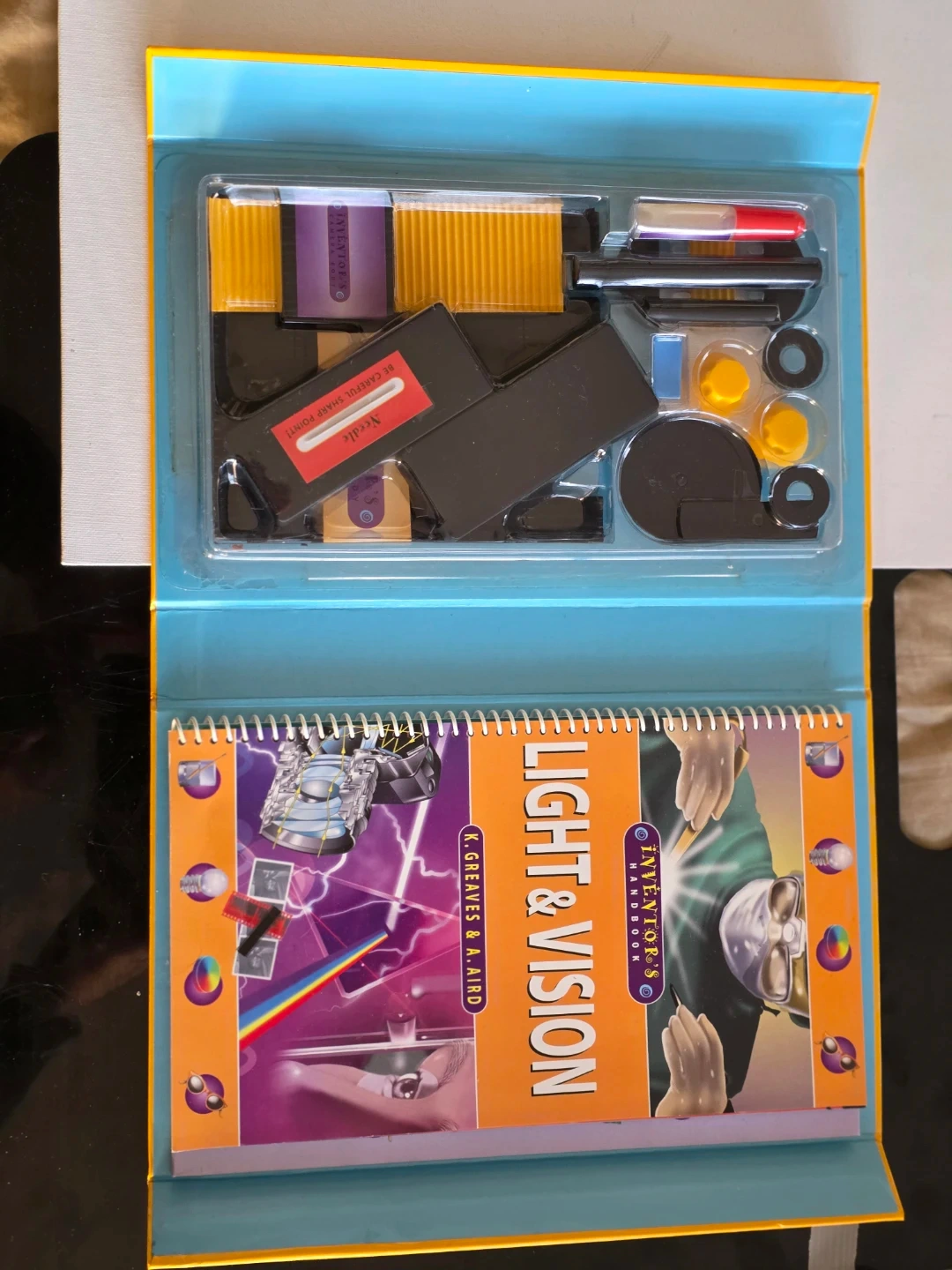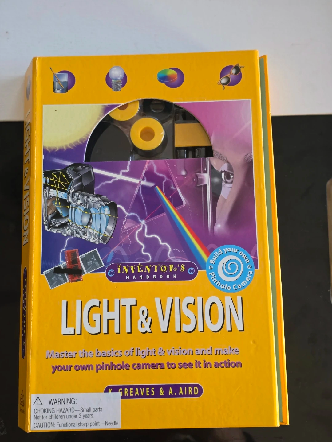 This is the Inventor's Handbook: Light & Vision kit by Keith Greaves and Andrea Aird. It is an educational science kit designed to teach the basics of light and vision, and includes components to build a pinhole camera.