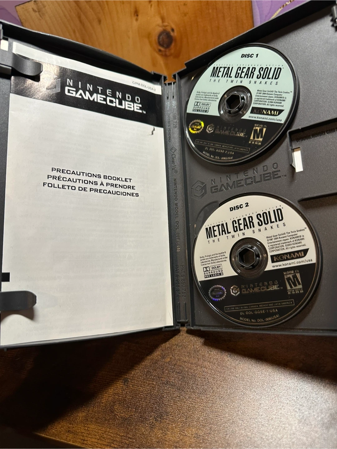 This is Metal Gear Solid: The Twin Snakes for the Nintendo GameCube. It includes two game discs and the booklet.