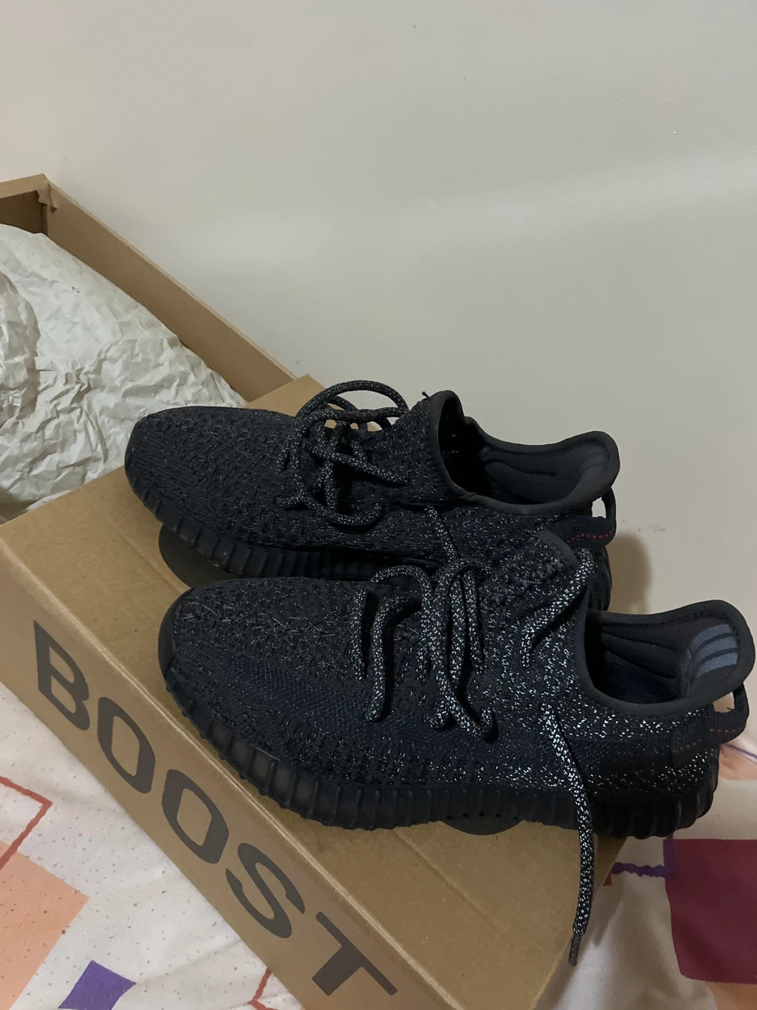 Size 5 I sell a pair of Adidas Yeezy Boost 350 in black! They are almost new, they still have a lot of life left. These are an elegant and comfortable shoe, perfect for daily use.