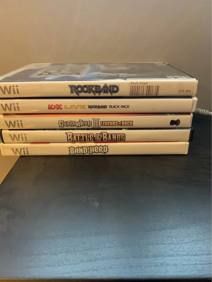 Buy & SellWii/Wii U Rock Band Set and GamesWii/Wii U Rock Band Set and Games$300Rock Band set includes drums, 2 guitars, microphone, and dongles. Comes with 5 games. Asking $300 or best offer.WHERE TO MEETCheck LocationView MapSELLERPvMountainside100 reviews1 chats·1 favorites·6 viewsSEND CHAT TO SELLERHi Pv! I’m interested in your listing.Hi Pv! I’m interested in your listing.Get the Karrot app to chatSign In to chat