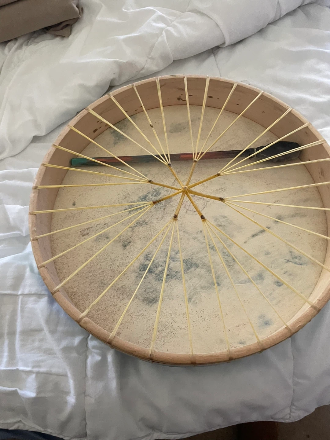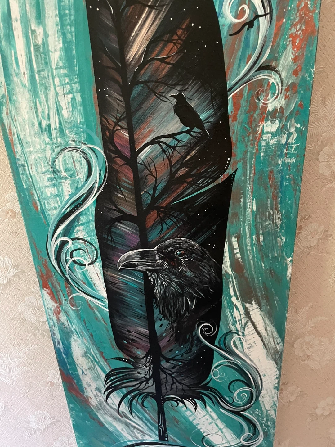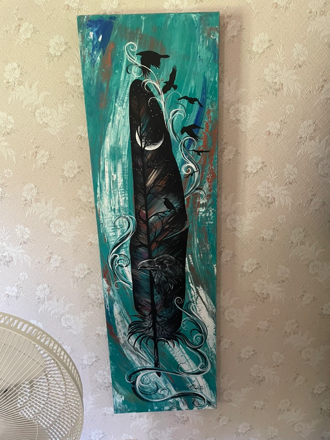 2 pieces Raven Spirit, drum and wall hanging both are original and unique no replications. The pictures don’t do this artwork justice the personal viewing is much better. These have been wonderful for me but I am moving and downsizing OBO 200$ for the Drum 100$ for the wall hanging 300 $ OBO if you take them both. The drum is 18.5 inches across and 2.5 inches deep