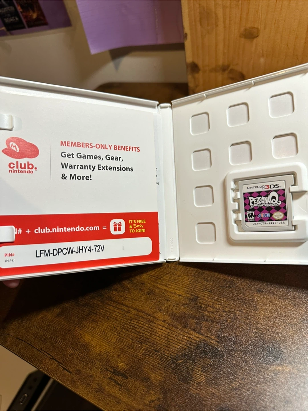 This is the Persona Q: Shadow of the Labyrinth game for Nintendo 3DS. It comes complete with the original case and game cartridge.