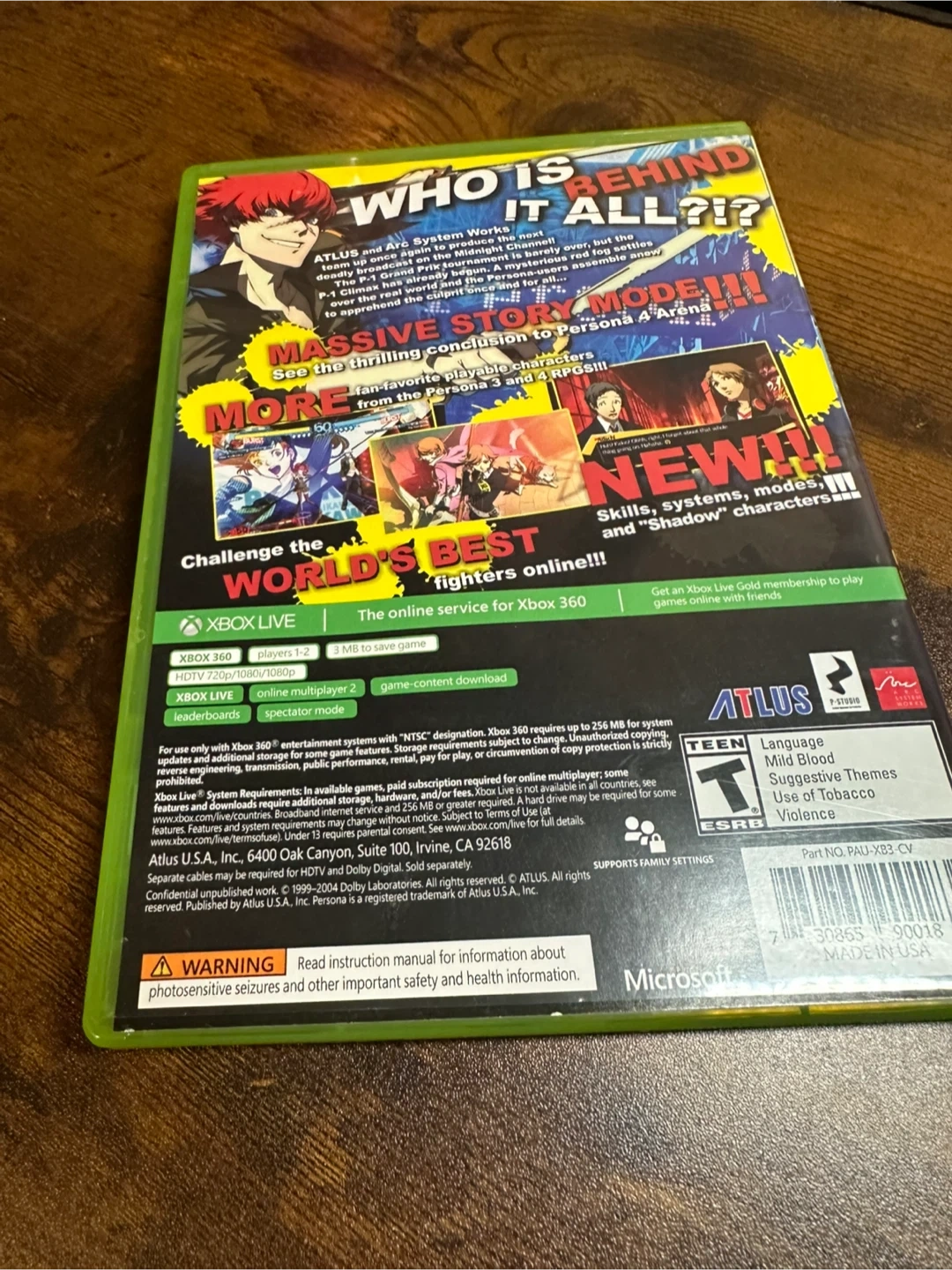 This is the complete edition of Persona 4 Arena Ultimax for Xbox 360. It includes the game disc, case, and manual.