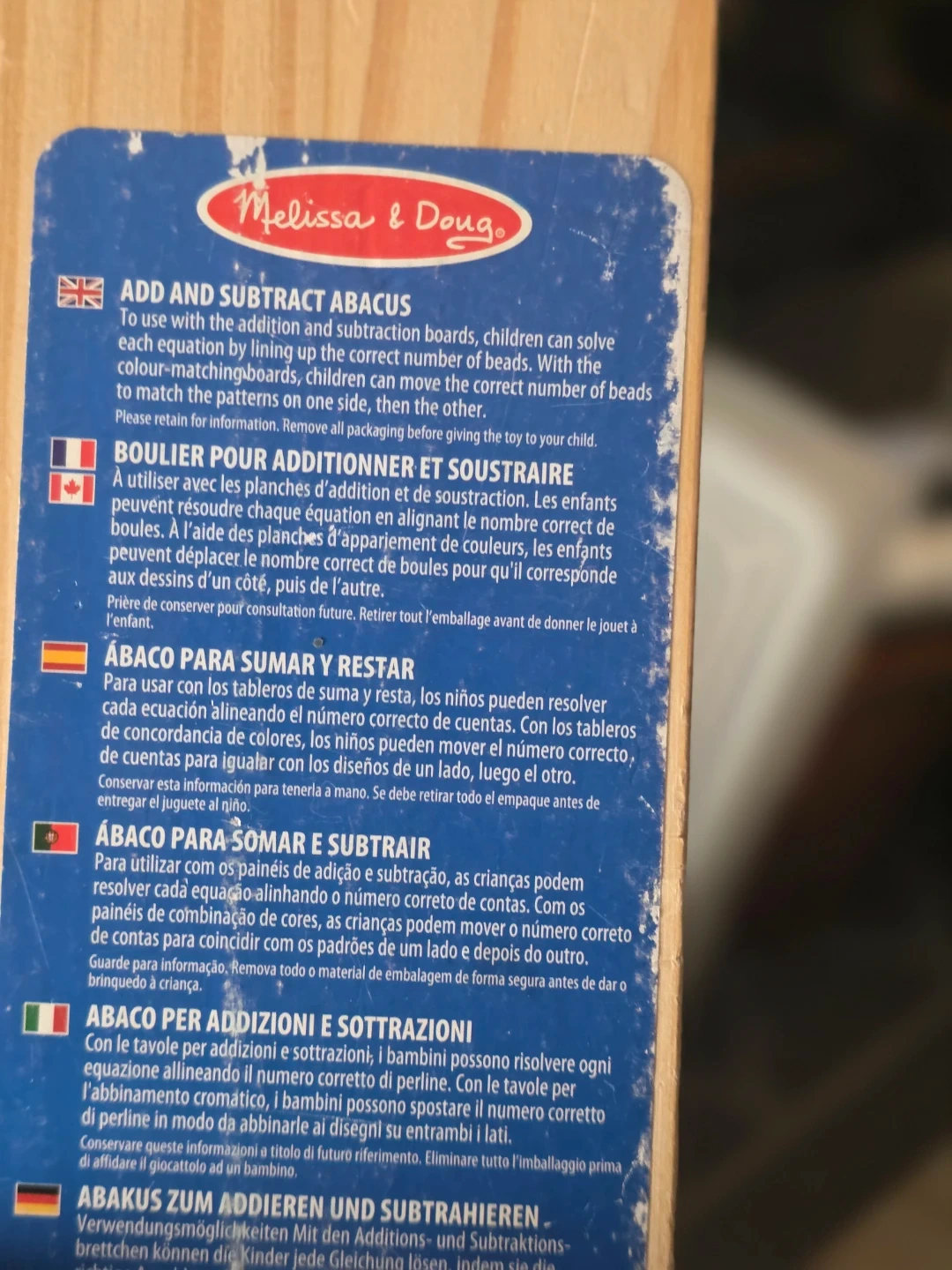 The sturdy wooden frame features addition and subtraction boards, as well as color-matching patterns.