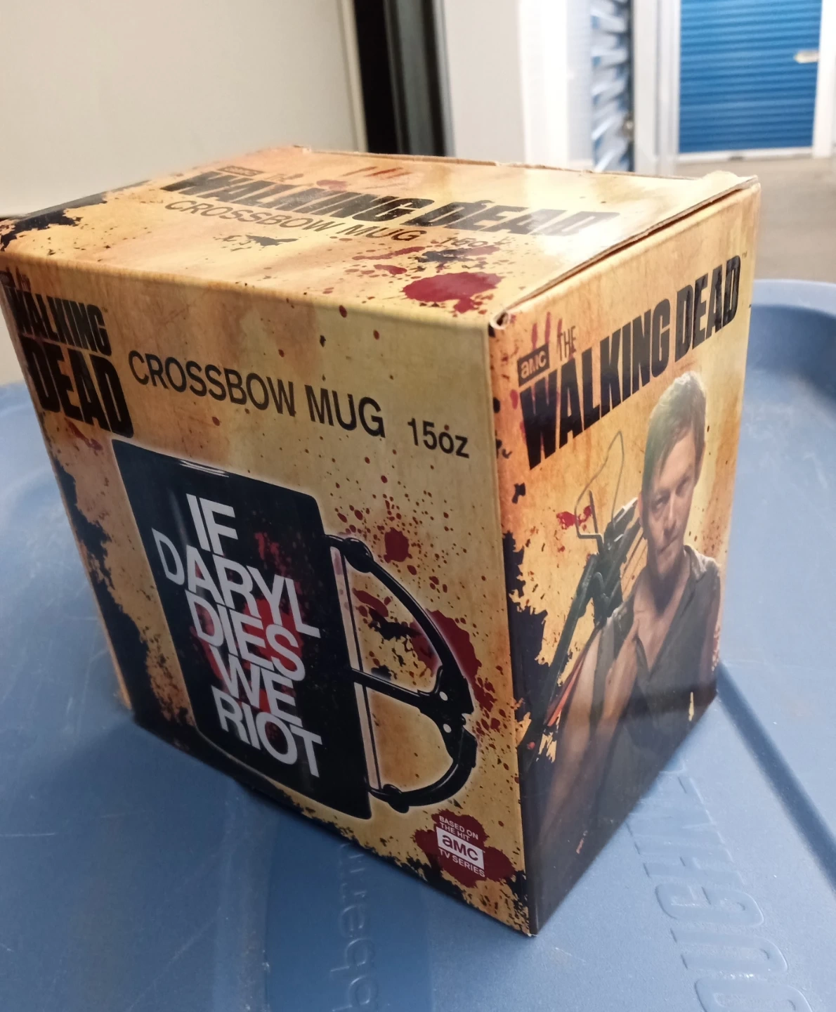 This is a 15oz mug from The Walking Dead series. It features Daryl Dixon and the quote 'If Daryl Dies We Riot'. Hand wash only. Never removed from box.