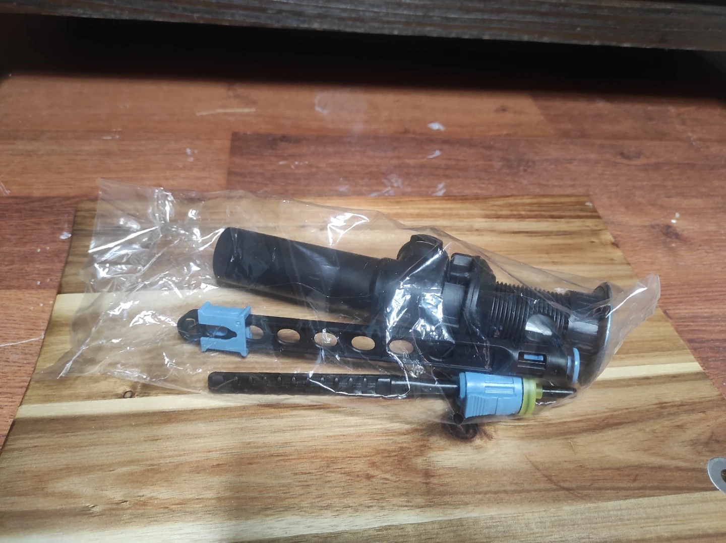 This is a replacement fill valve kit for a toilet tank. It's made of durable plastic. This kit is useful for repairing a leaky or malfunctioning toilet flush system.