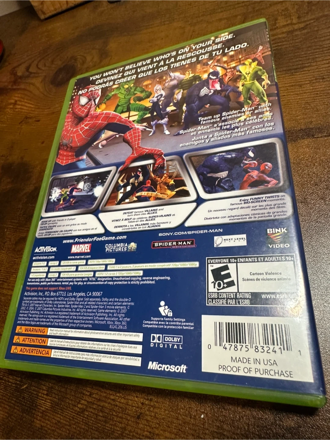 This is the Spider-Man: Friend or Foe video game for Xbox 360. It includes the game disc, case, and manual.