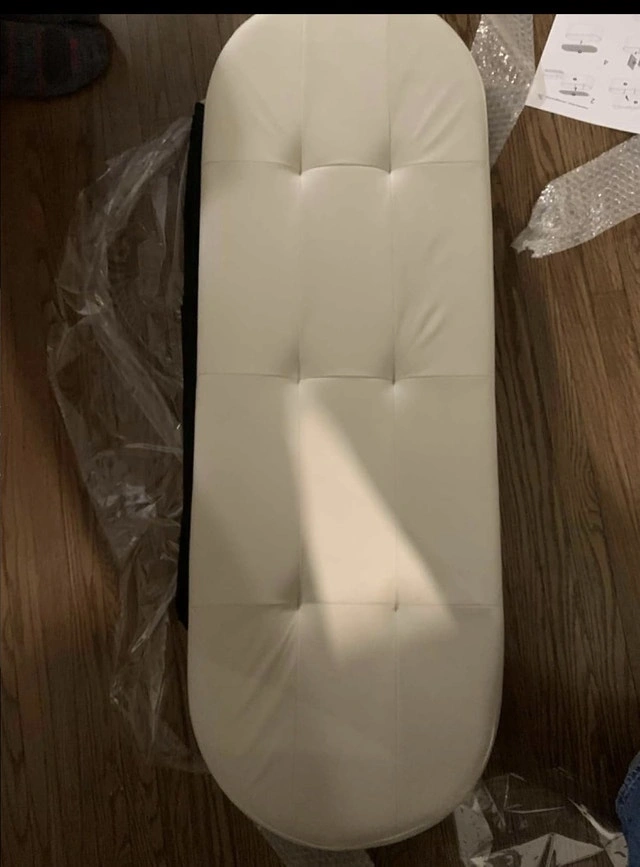 This brand new folding ottoman with storage is perfect for adding extra seating and storage to any room. Its sleek design and durable construction make it a versatile and stylish addition to your home decor.