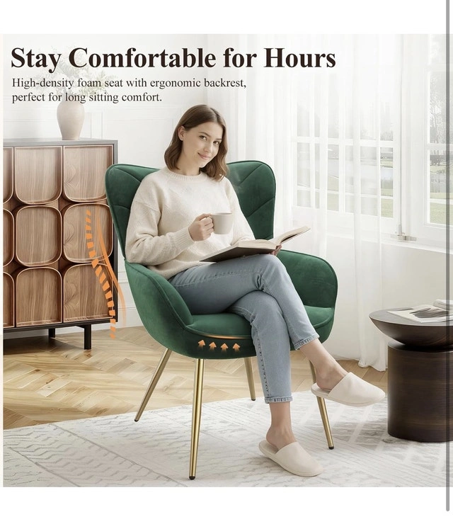 Elevate your living space with this brand new mid-century modern accent chair, designed for both style and comfort. The chair features a curved ergonomic backrest, high-density rebound foam, and a wide, comfy seat, ensuring you stay comfortable for hours. The polished metal legs can support up to 250 lbs, and the adjustable feet provide stability on any surface. Key Features: Curved Ergonomic Backrest, Comfortable Wide Seat, High-Density Rebound Foam, Adjustable Feet for Stability, Polished Metal Legs. This chair is a charming piece that will be the talk of the town. If the ad is up, it's available! Cash accepted.