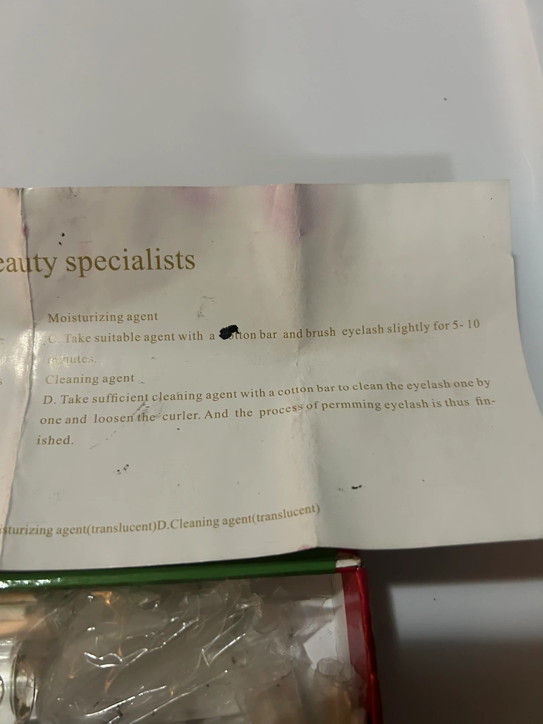 This lash lifting kit includes perm agent, finalizing agent, moisturizing agent, and cleaning agent. It's designed for professional lash curling. The set comes with multiple small bottles for each solution. Not used!