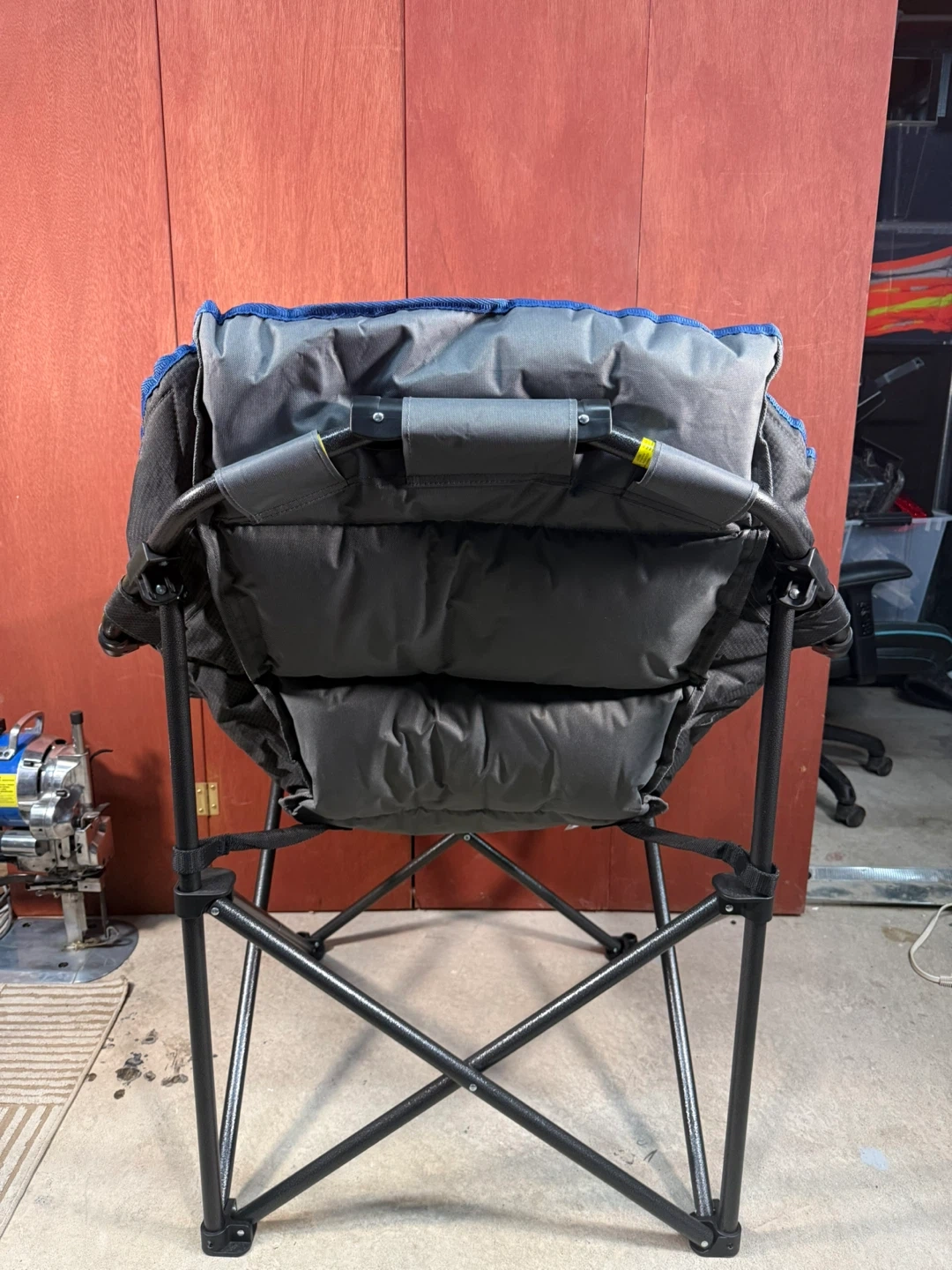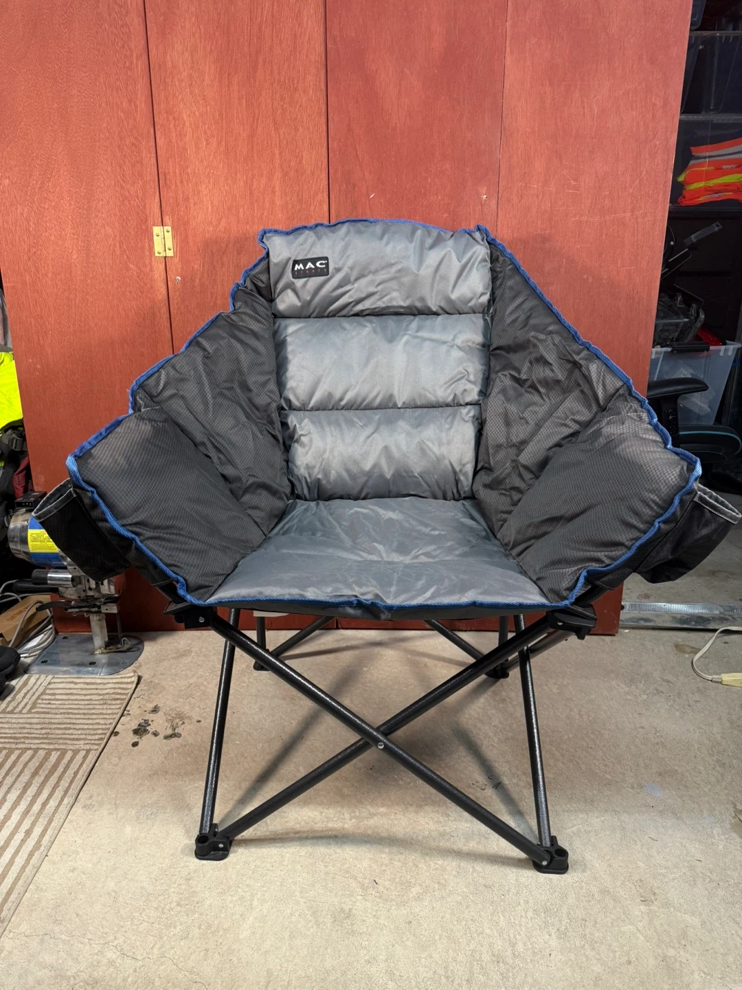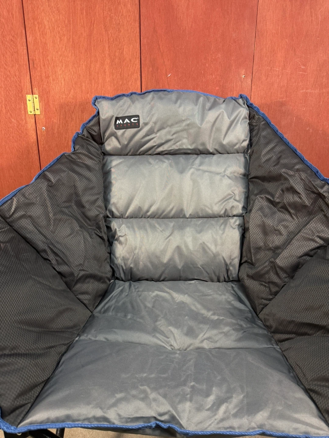 Get cozy anywhere with this Mac Sports padded club chair! This chair is designed for ultimate comfort and convenience, perfect for camping, sports events, or just relaxing in the backyard. It features a super comfortable padded seat and backrest, a sturdy steel frame, and includes a convenient carry bag for easy transport. The chair is in new condition, ready for your next adventure.