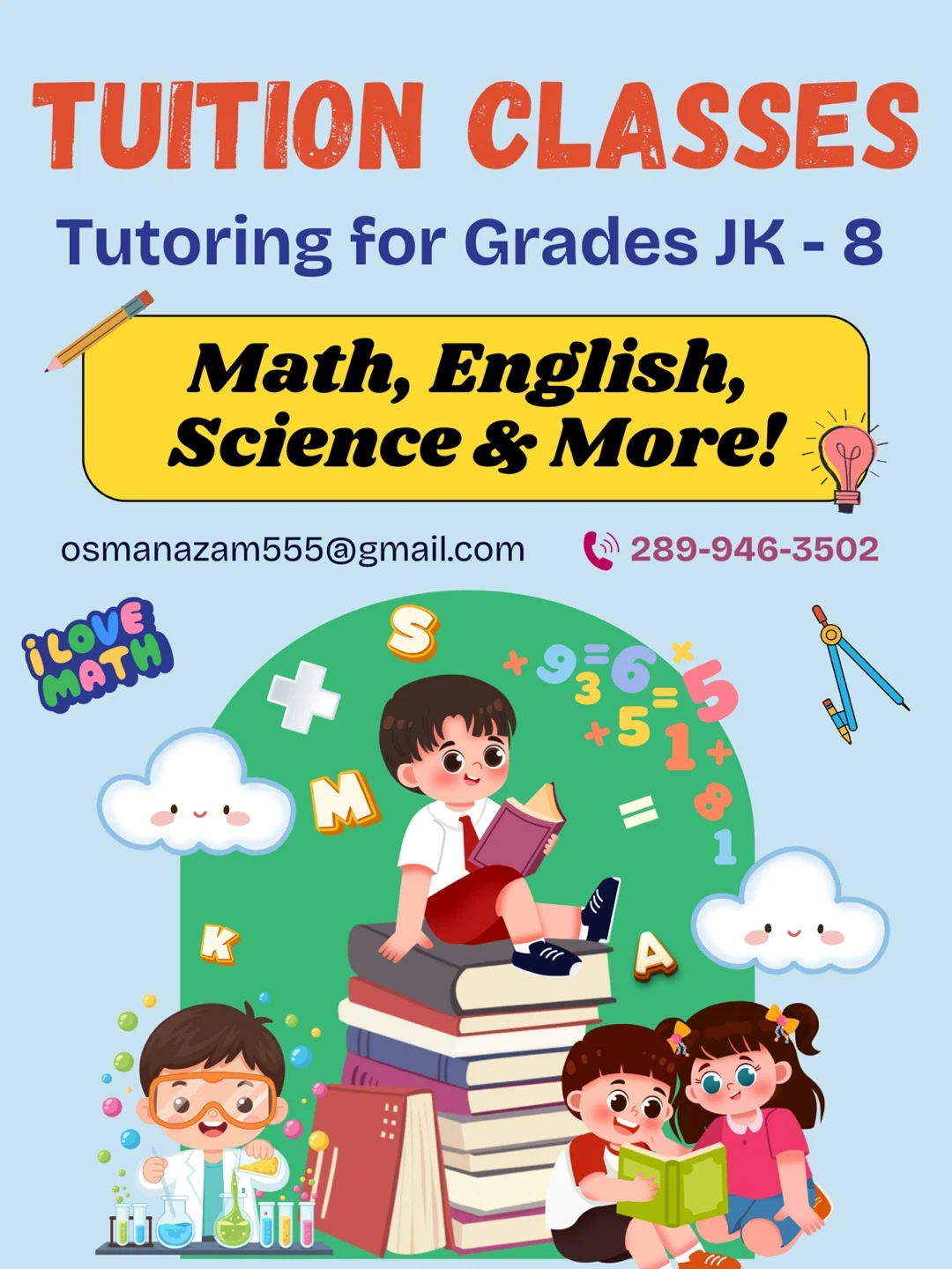 - I will help your child grasp concepts easily and can help them learn Math, English, Science and more!