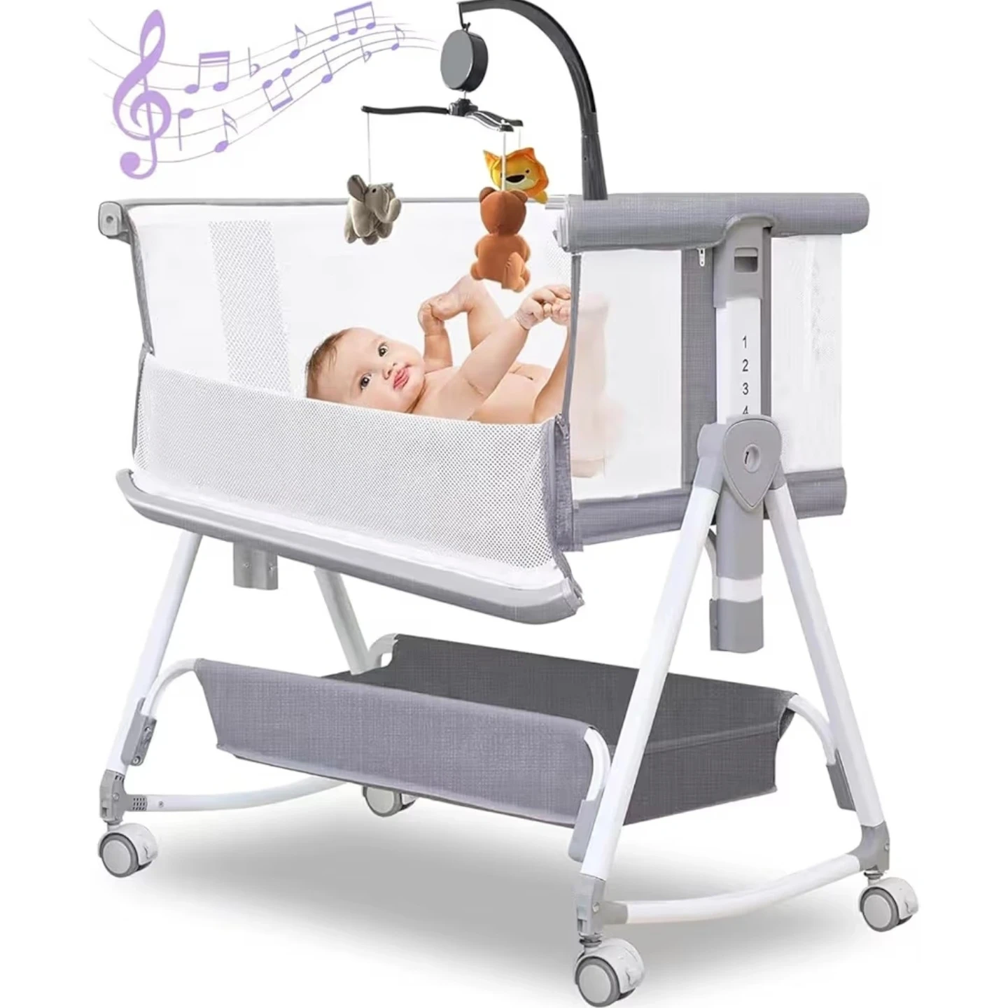 This convertible bassinet is a versatile option for your baby. It features 7 adjustable height levels, ranging from 29 to 35 inches, perfect for aligning with your bed. The unit also functions as a rocking bassinet and a standalone baby bassinet. It's designed to be close by your side.