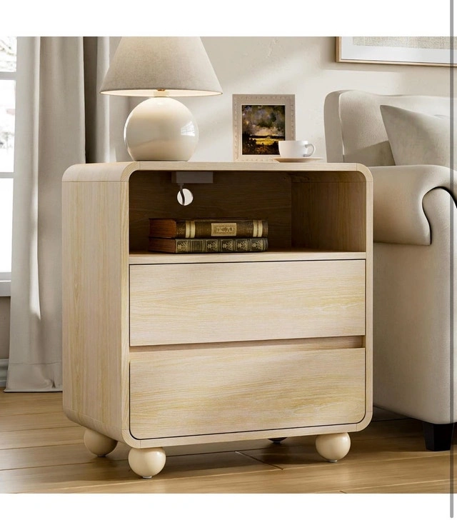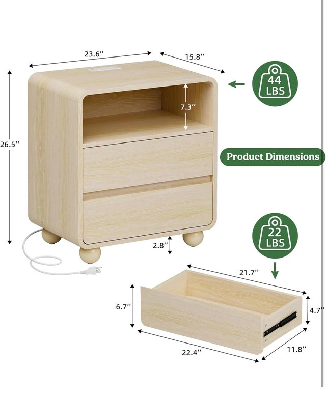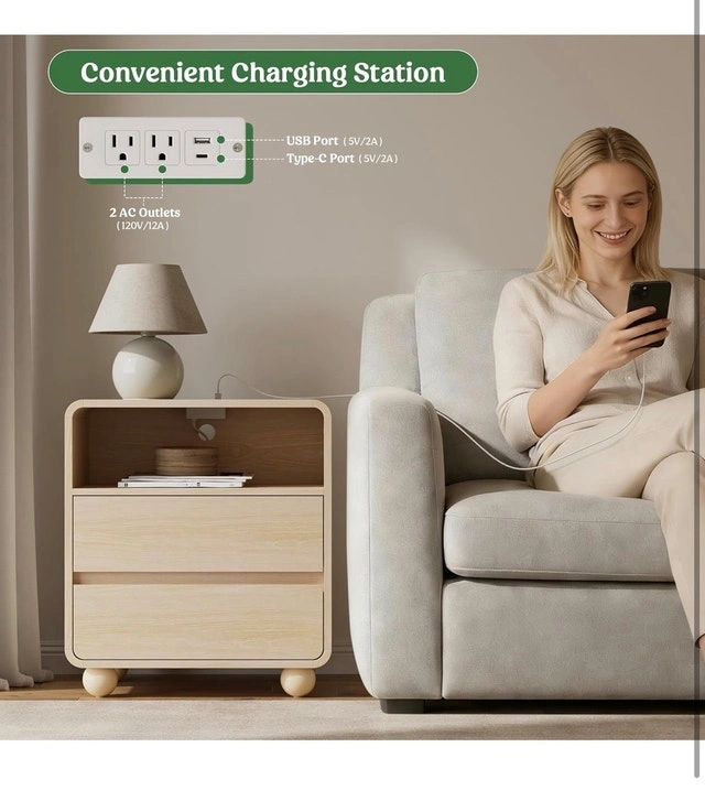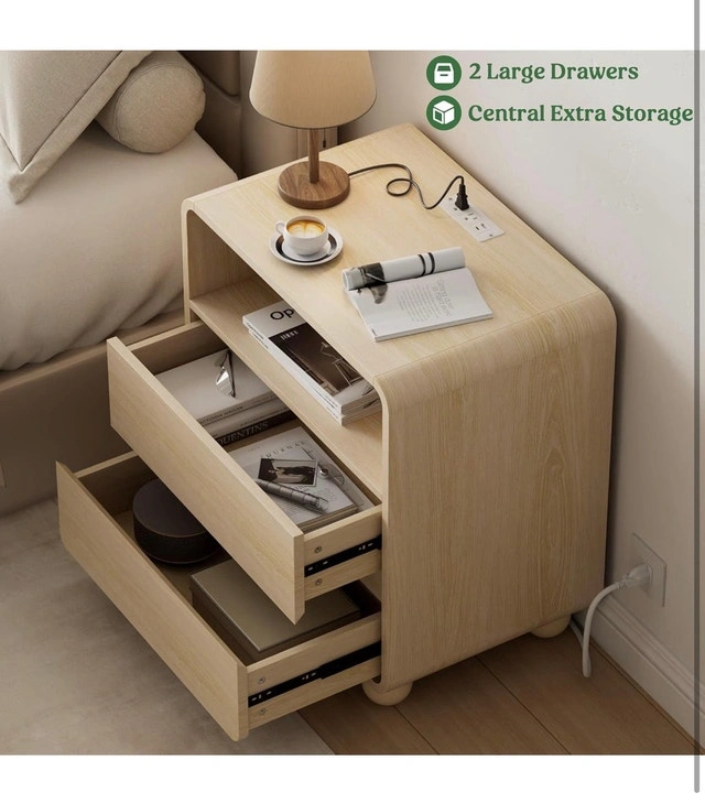 This nightstand is in new condition and features a modern design with two spacious drawers and an open shelf for extra storage. It's equipped with a convenient charging station, including AC outlets, USB ports, and a Type-C port. Perfect for keeping your devices charged and your essentials within reach. Additional Features: 2 Large Drawers, Central Extra Storage, Convenient Charging Station. Looking for a stylish and functional addition to your bedroom? This nightstand is ready to join your bedside and keep all your nighttime necessities neatly organized. If the ad is up, it's available.