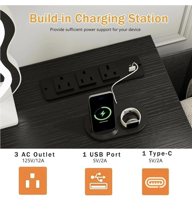 This brand new computer desk features three drawers and built-in power outlets, making it a functional and stylish addition to any home office or workspace. The desk also includes a storage bag. Key Features: Built-in Charging Station: Includes 3 AC outlets, 1 USB port, and 1 Type-C port. Storage: Features three drawers and one storage bag. Sturdy Construction: Made with a solid steel frame and adjustable feet. Get organized with this beautiful desk. Don't miss out—if you're seeing this ad, it's still available! Cash accepted.