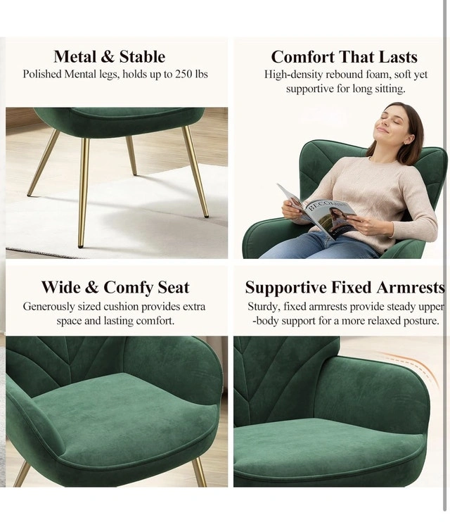 Elevate your living space with this brand new mid-century modern accent chair, designed for both style and comfort. The chair features a curved ergonomic backrest, high-density rebound foam, and a wide, comfy seat, ensuring you stay comfortable for hours. The polished metal legs can support up to 250 lbs, and the adjustable feet provide stability on any surface. Key Features: Curved Ergonomic Backrest, Comfortable Wide Seat, High-Density Rebound Foam, Adjustable Feet for Stability, Polished Metal Legs. This chair is a charming piece that will be the talk of the town. If the ad is up, it's available! Cash accepted.