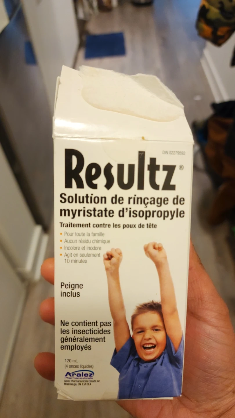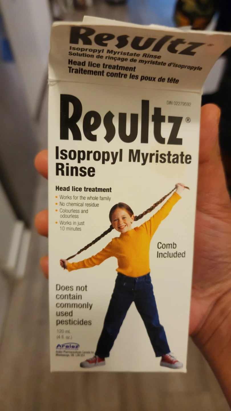 Expiry: March 2026. Resultz Isopropyl Myristate Rinse for head lice treatment. It works for the whole family, is colourless and odourless, and has no chemical residue. It works in just 10 minutes and does not contain commonly used pesticides. Comb included.