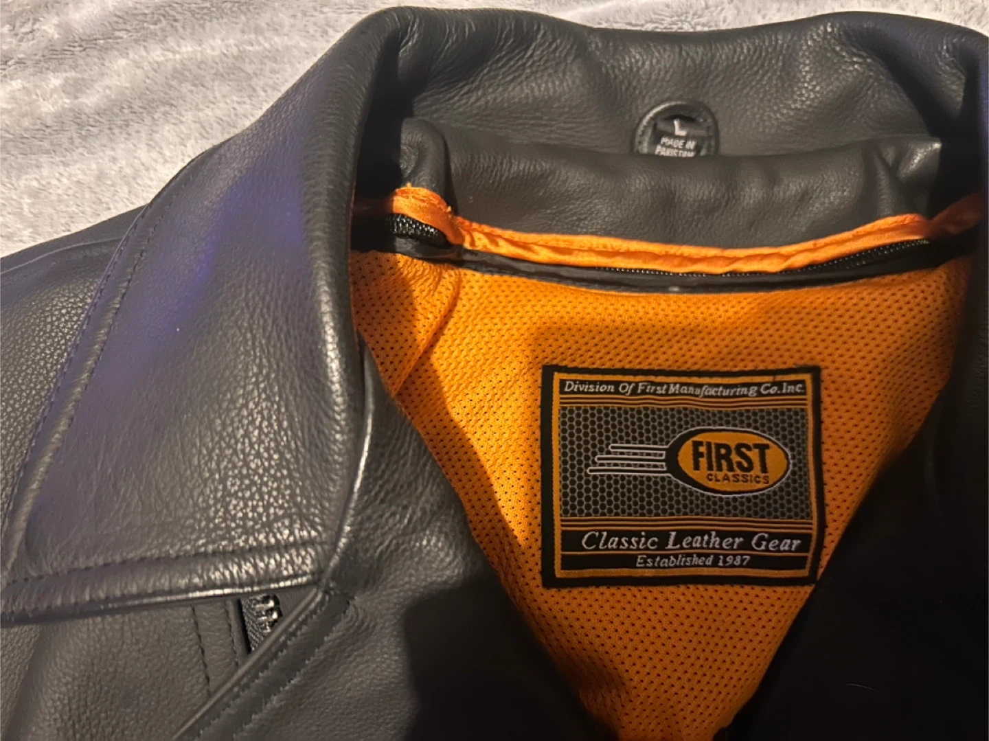 This is a men's black leather motorcycle jacket from First Classics. It's made of genuine leather and features a classic motorcycle jacket design. It's a great choice for riders looking for durable and stylish gear.
