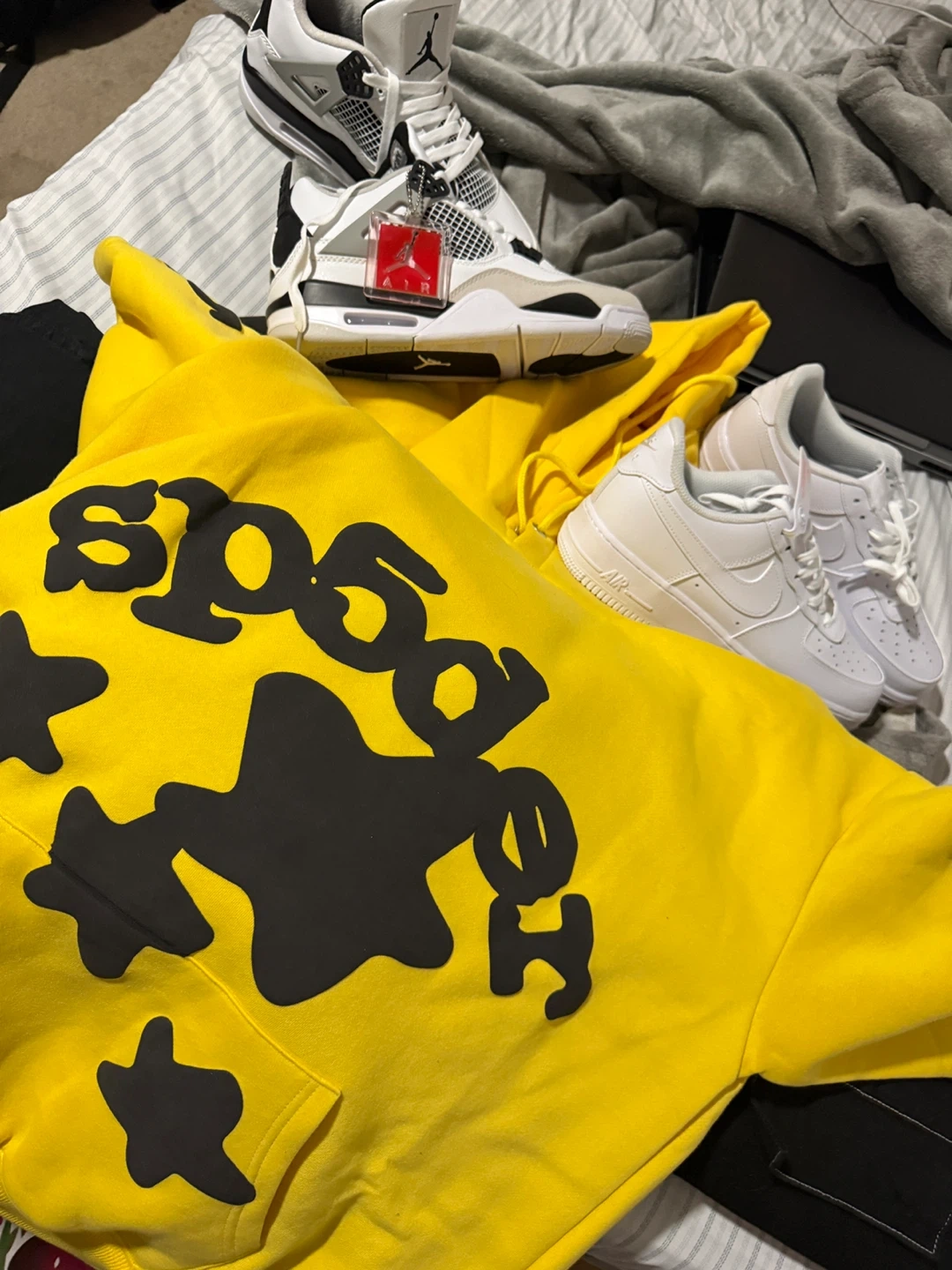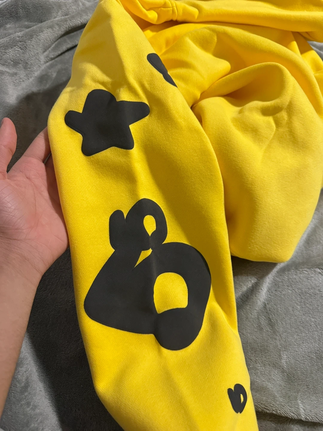 Yellow Sp5der Hoodie with Black Stars