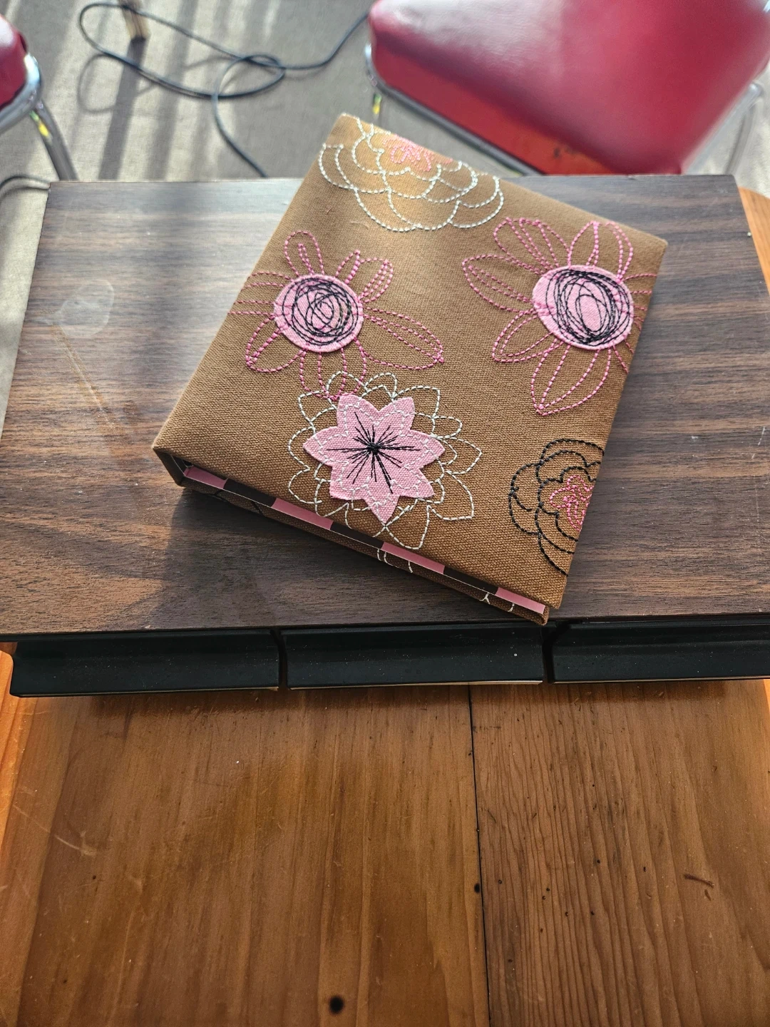 This is a vintage cassette tape storage box, 34 tapes, with a floral embroidered cover. It includes a binder-style address book with pink polka dot accents. The box holds many cassette tapes and comes with the address book inserts.